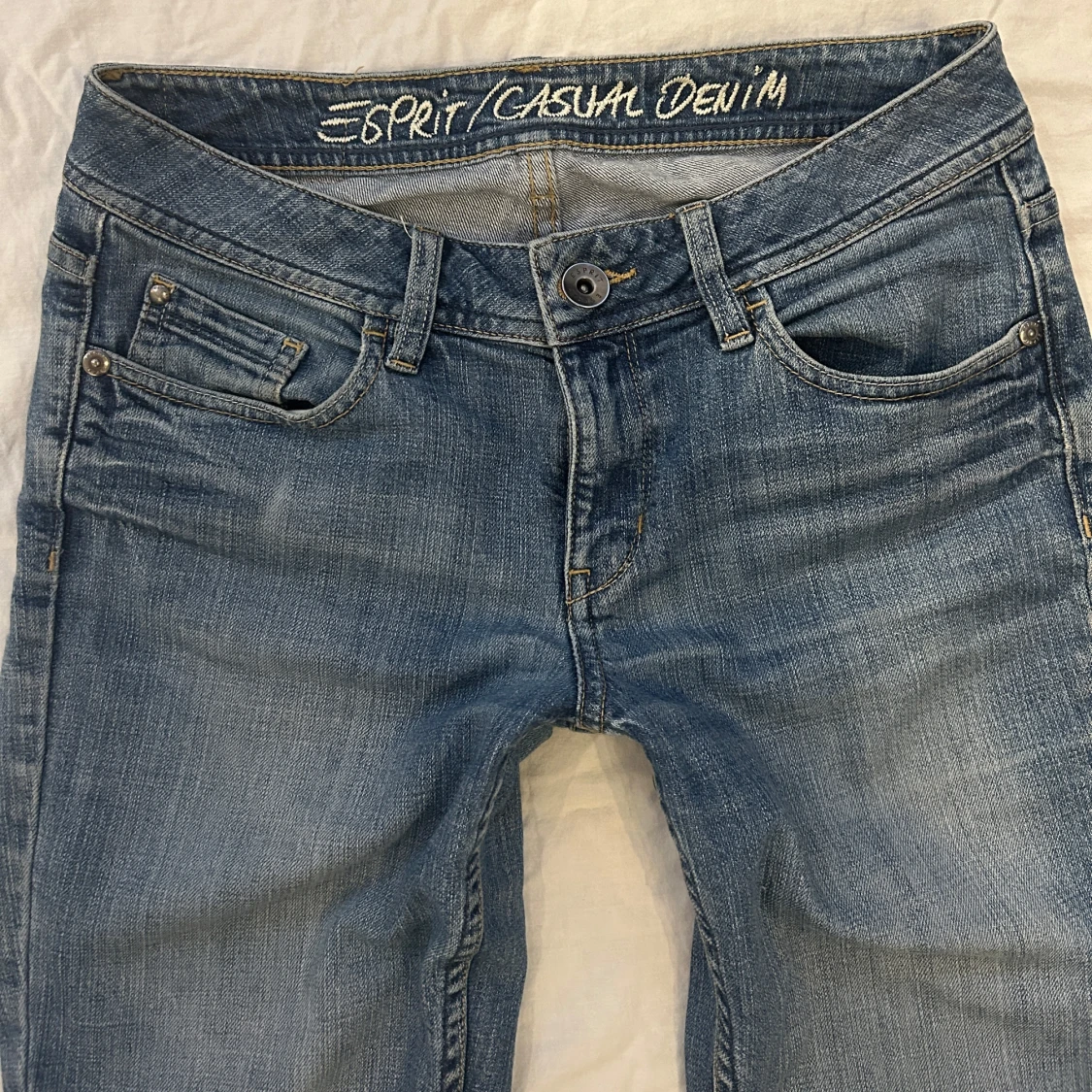 Vintage jeans från esprit med en låg midja och raka ben. Storlek S Bra skick. midja: 37cm, grenmått: 21,5cm innerbenslängd: 75cm, benöppning: 19cm