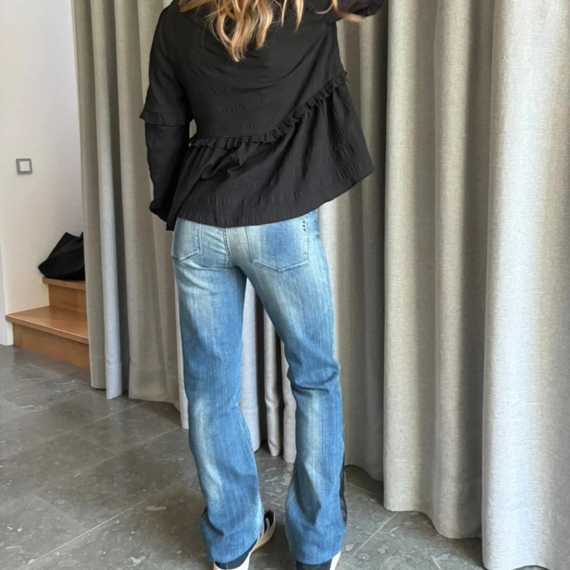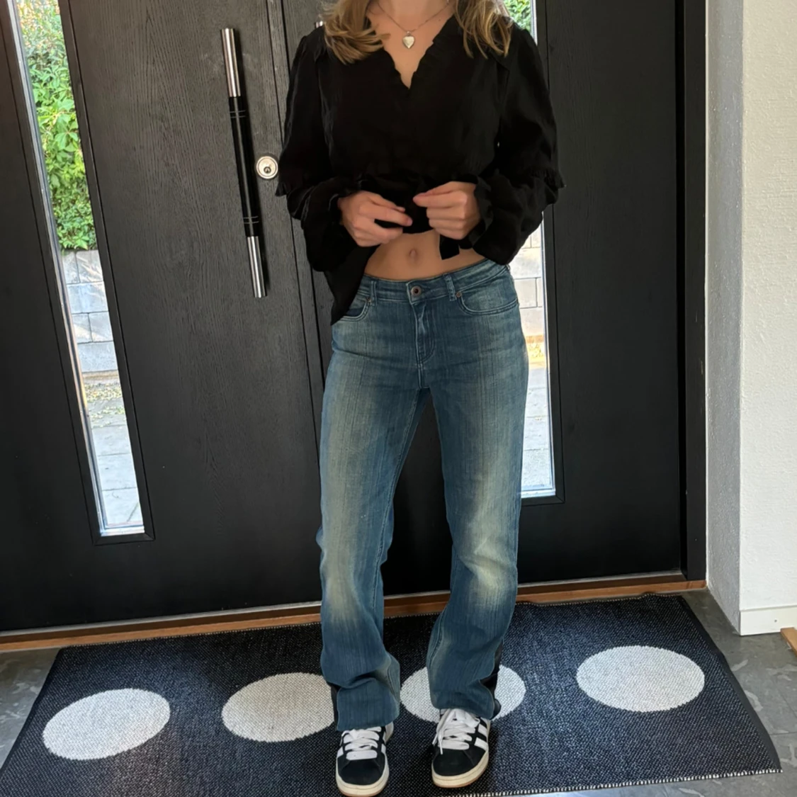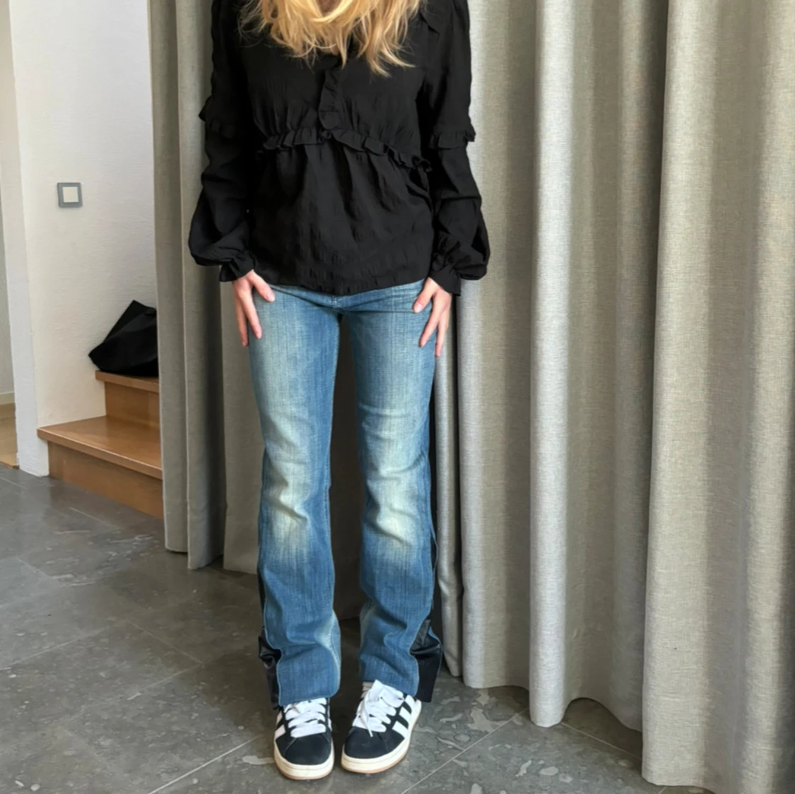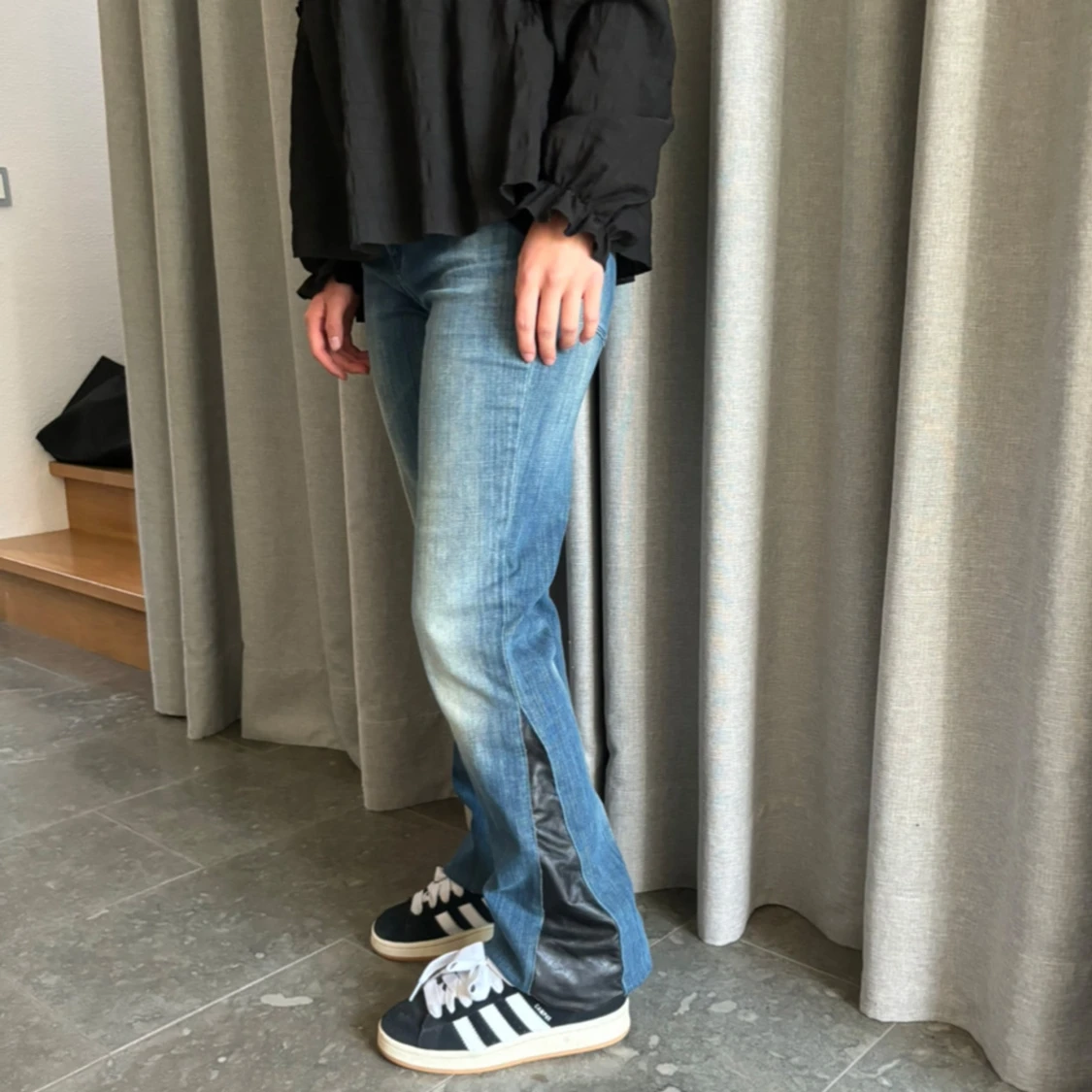 Vintage jeans som jag sytt om.đJeansen har skinndetaljer pĂ„ benen. Perfekta till hösten!đinerbenslĂ€ngd: 80 cm(men gĂ„r att vika upp) midiemĂ„tt: 37X2. Tryck gĂ€rna pĂ„ köp nu. StĂ€ll gĂ€rna frĂ„gor och pris kan diskuteras.đđ©·đ