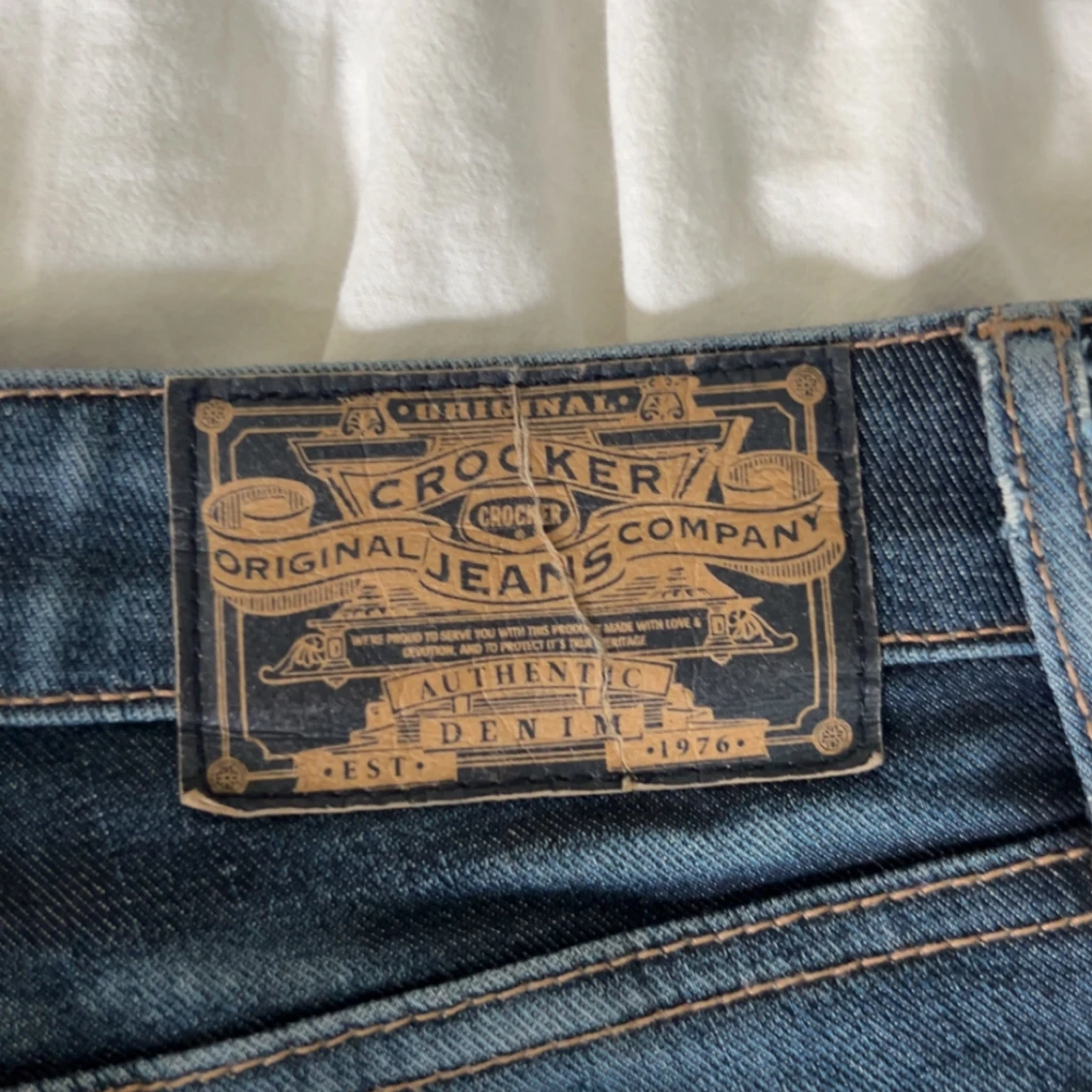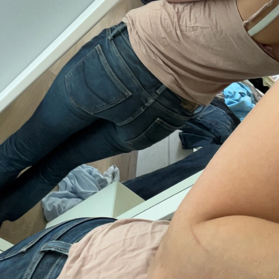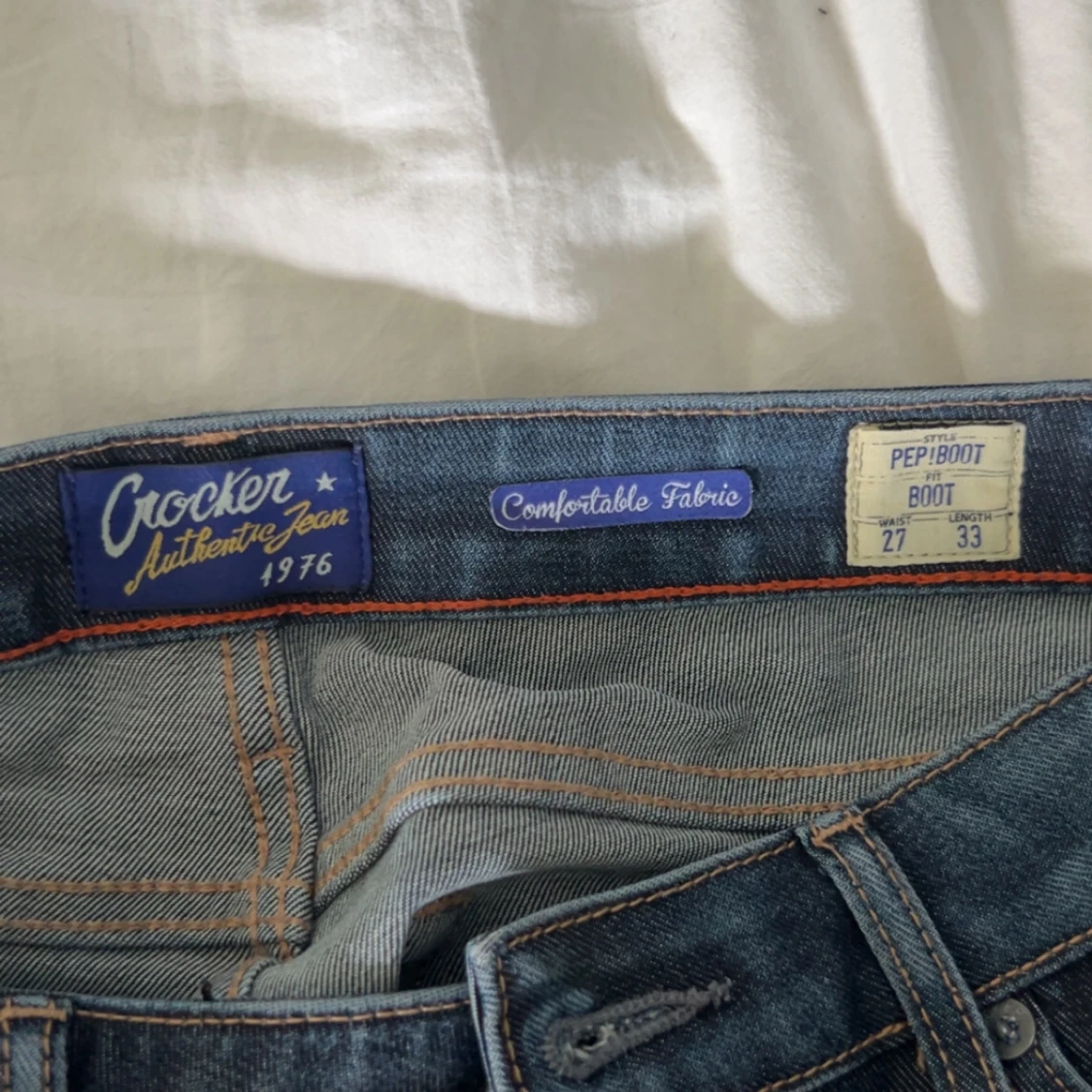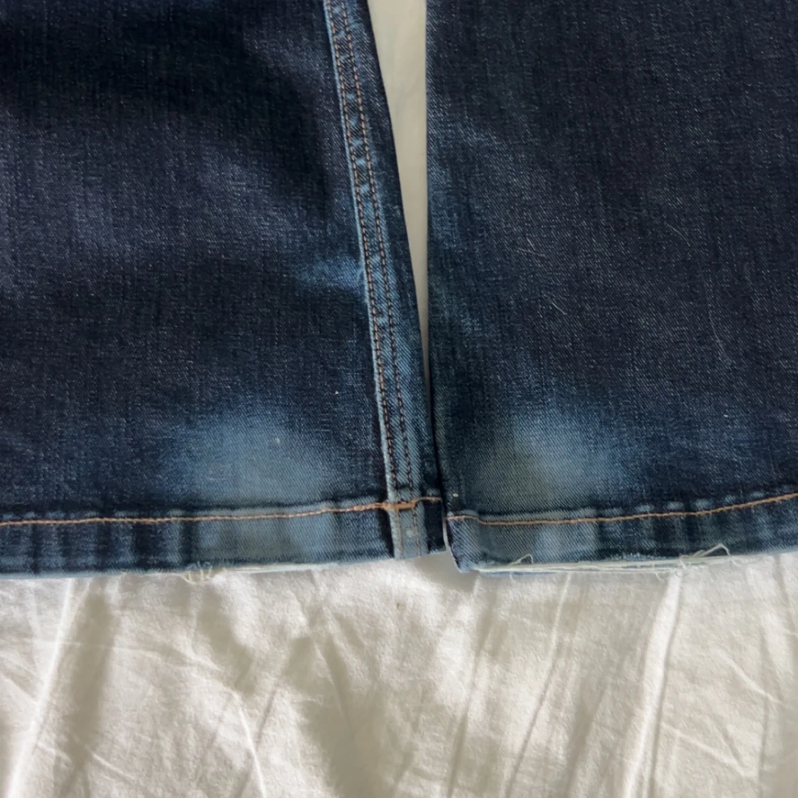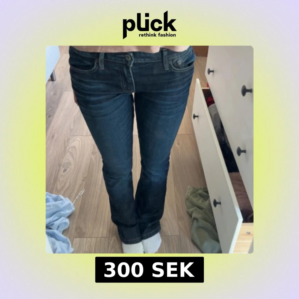 Mörkblå bootcut jeans!! lite slitna vid sluten av benen men d är inget som riktigt syns!