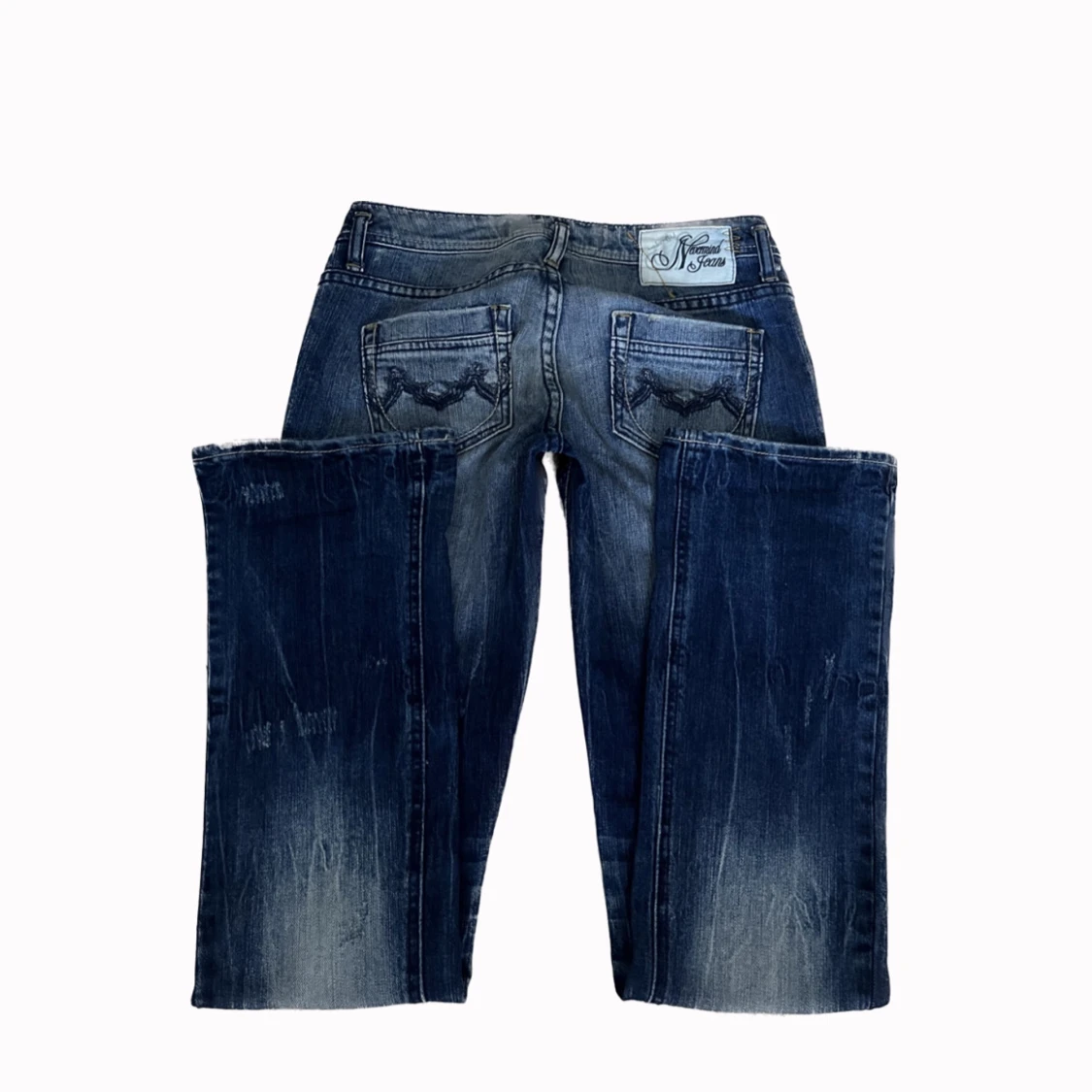 Så snygga lågmidjade y2k byxor som sitter lite bootcut! midjemåttet: 38cm tvärsöver innerbenslängd: 81cm ! Har ingen bild på hur de sitter på då de är för små ! PS. Kolla igenom mitt konto ni kommer hitta många y2k och vintage plagg!
