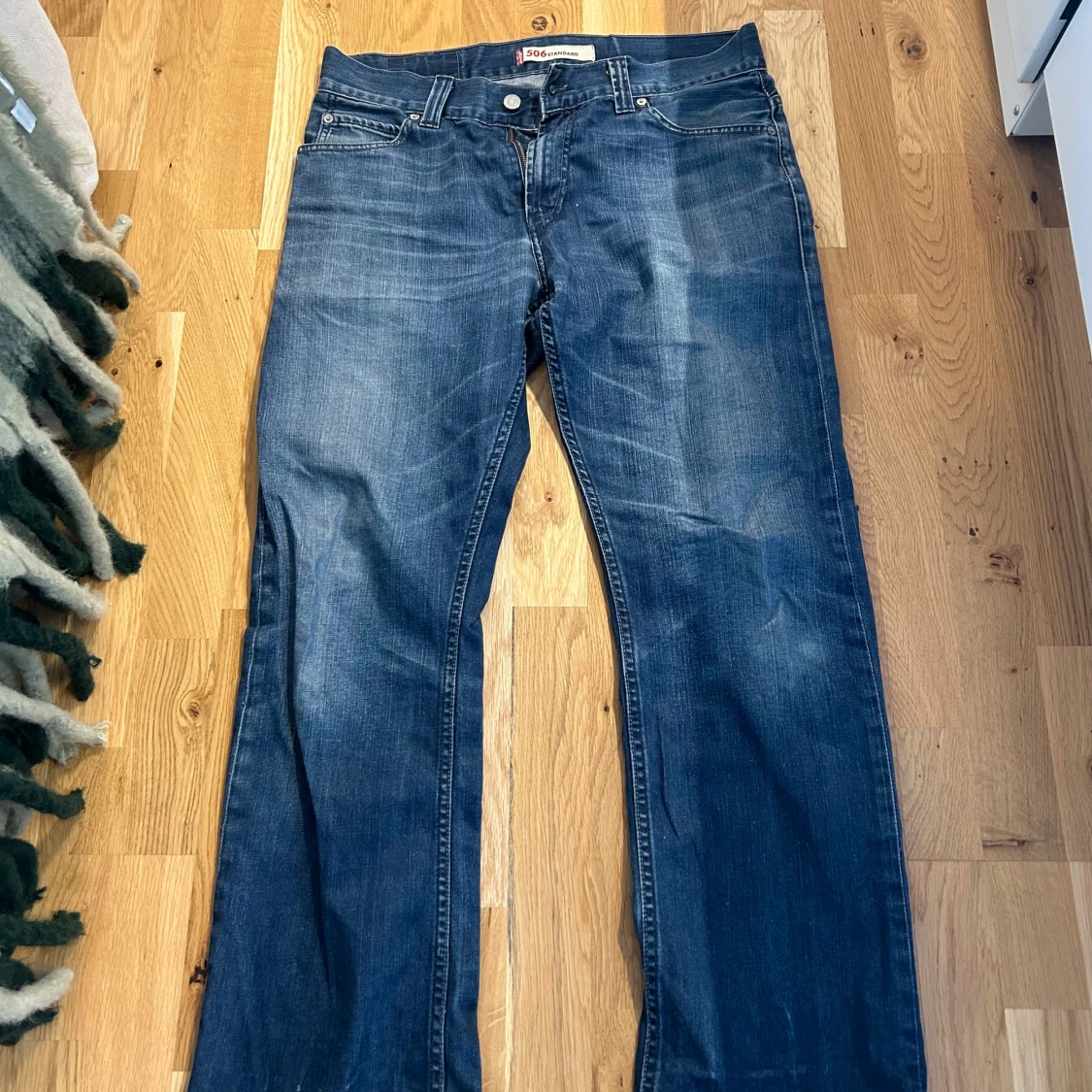 Säljer ett par klassiska Levi's jeans i blå denim. De har en straight passform och är i bra skick. Perfekta för både vardag och fest! 🕺