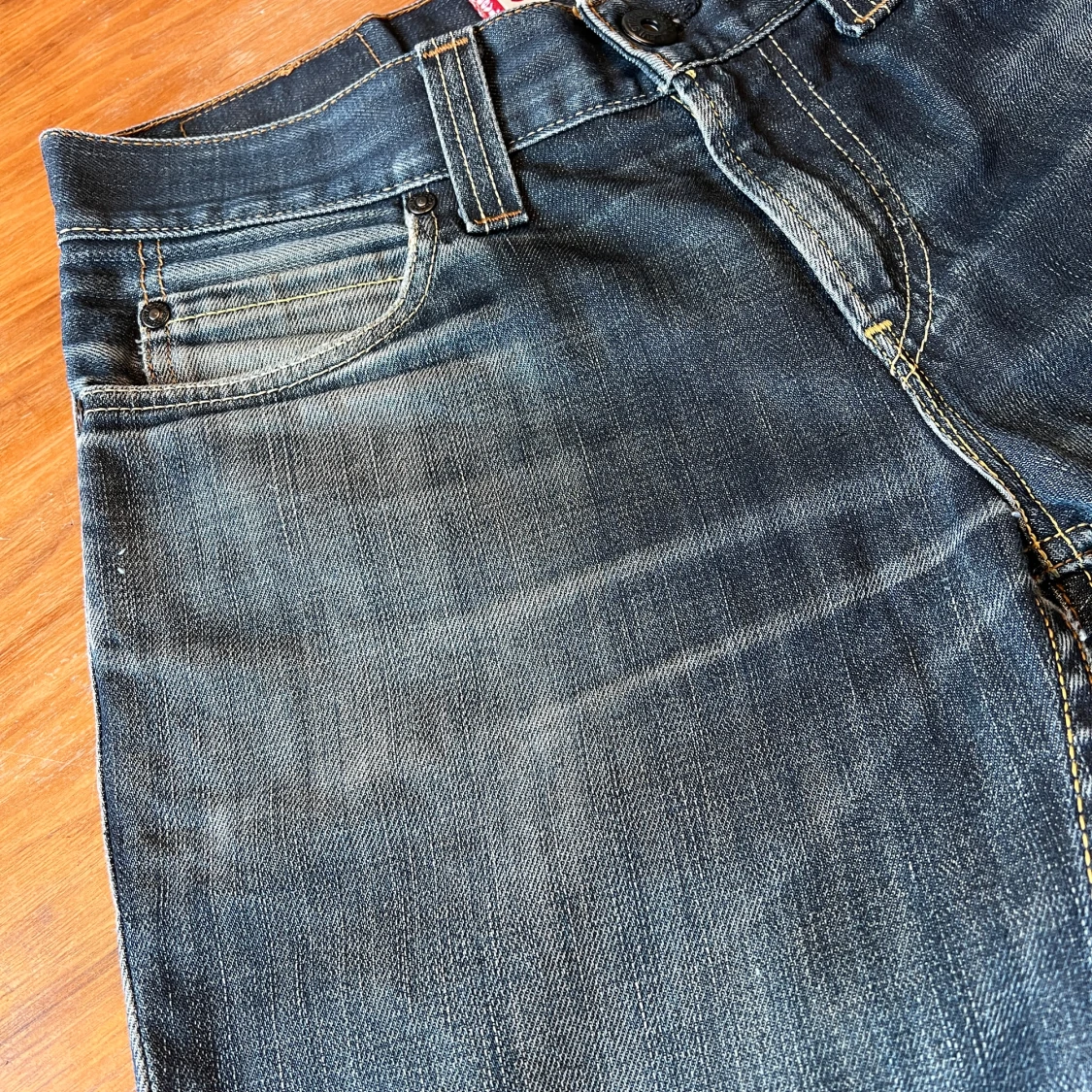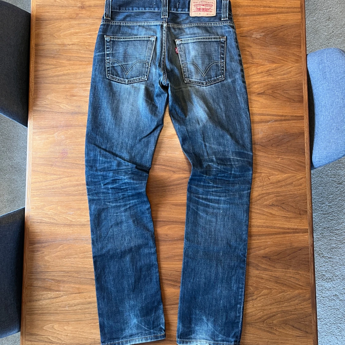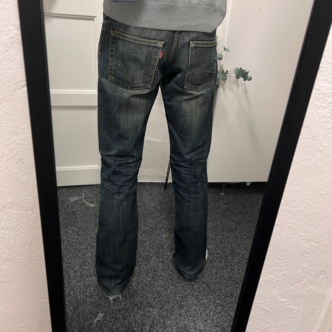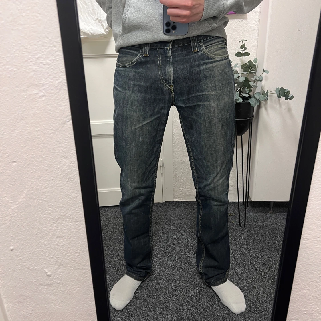 Klassiska blå Levis 501 jeans med raka ben och femficksmodell. Jeansen har normal passform och är tillverkade i slitstarkt denim med knappgylf. Perfekta för dig som gillar tidlös stil och vill ha ett par jeans som funkar till det mesta. W32/L34 Skriv om du har någon fråga.