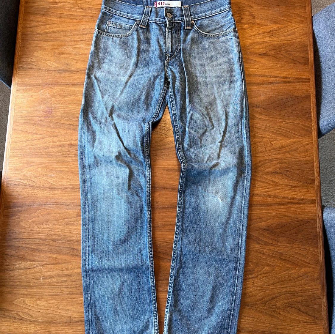 Säljer ett par klassiska Levis 511 jeans i blå tvätt. Modellen har normal passform med raka ben och fem fickor. Jeansen har dragkedjegylf och är tillverkade i slitstarkt denim. Perfekta för en avslappnad stil. W30 L32 (taggen säger L34). Skriv om du har någon fråga.
