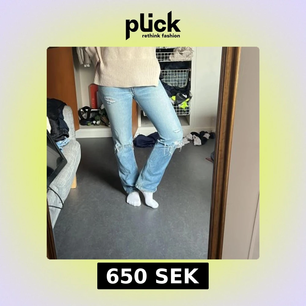Håliga Levis jeans, skkkiiiiitsnygga men vill ha de lite mindre på mig, skulle säga att de är 36. Måtten som står syns inte då de är köpta second hand. De har verkligen den perfekta färgen! Modell 501