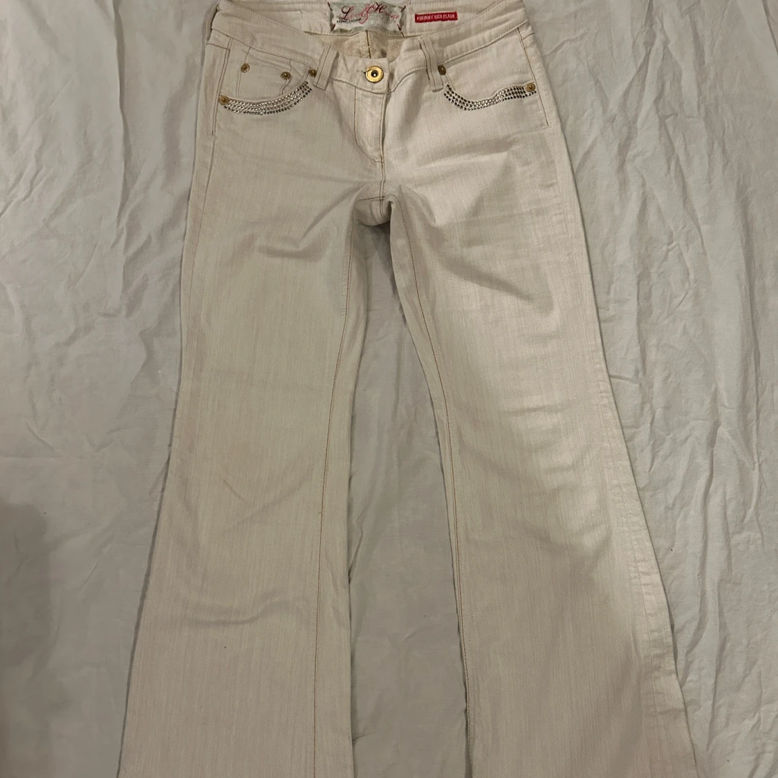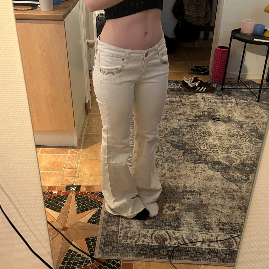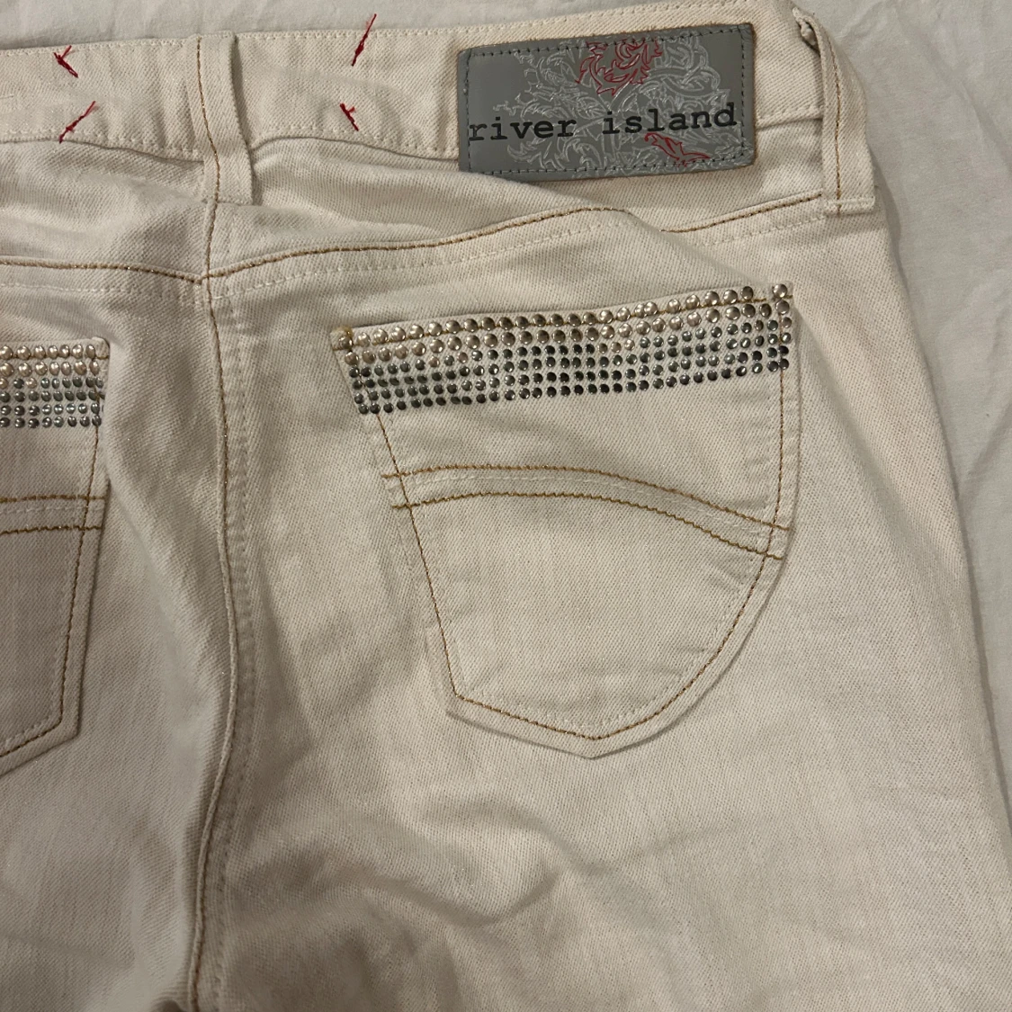 Vintage jeans från River Island i bra skick. De är lågmidjade och har en flare modell. Midja: 39,5cm Grenmått: 21cm innerbenslängd: 84cm benöppning:29cm.