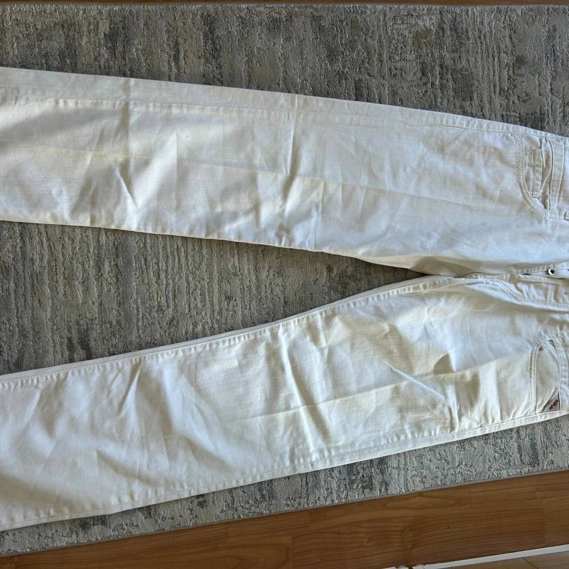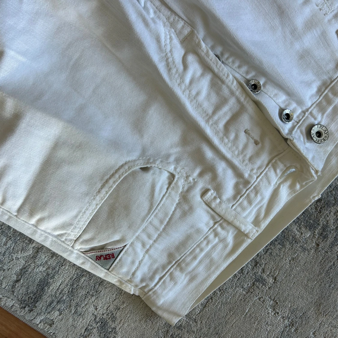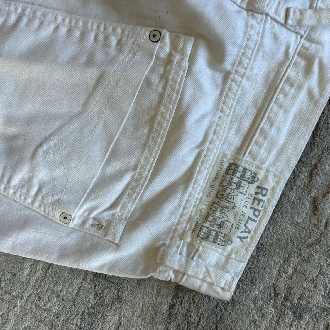 Snygga vita jeans från Replay i klassisk femficksmodell. Byxorna har raka ben, normal passform och är tillverkade i bomull. Perfekta för dig som vill ha en clean och fräsch look. Diskret Replay-logga vid fickan och silverfärgade knappar.