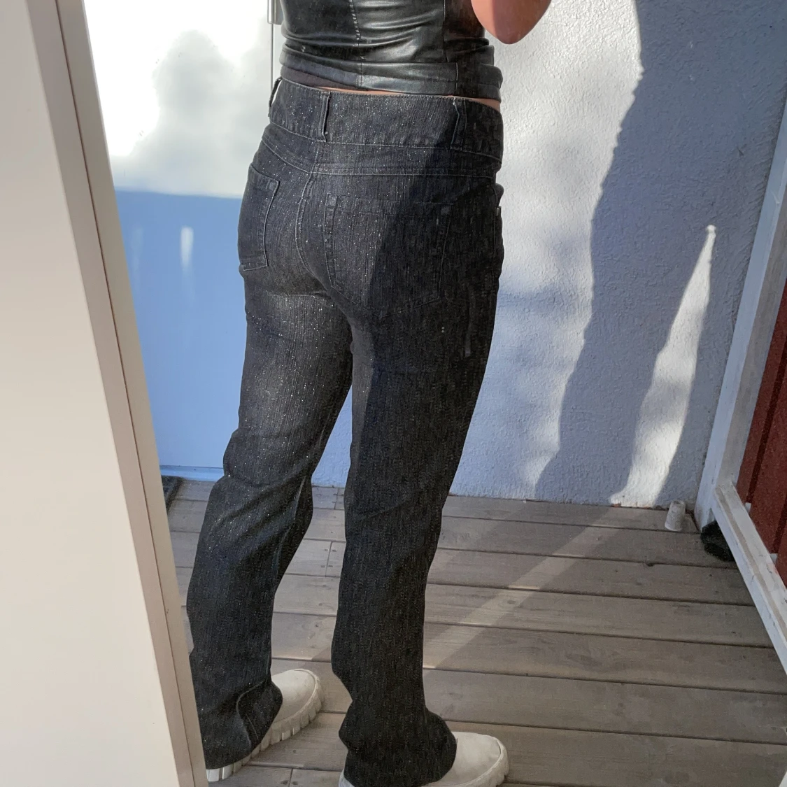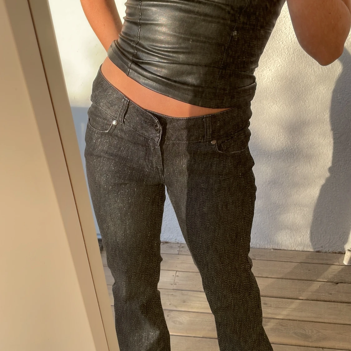 Supersnygga lågmidjade svartajeans som glittrar väldigt fint! Model bootcut - low raise 🥰 frakt tillkommer med 66kr