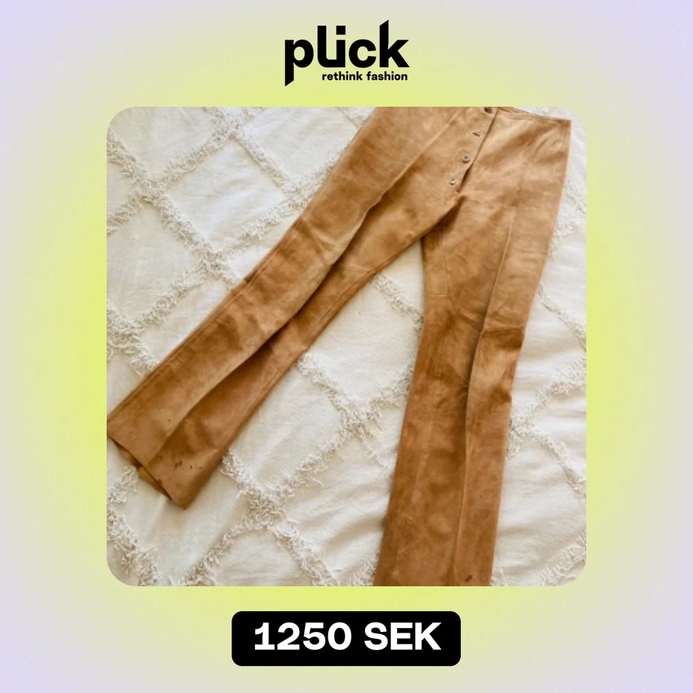 Magiska skinnbrallor i det mjukaste skinnet du kan tänka dig. Längd 101cm Innerben längd 77,5cm Bredd 37,5cm (omkrets midja 76cm) ”Gylf” Längd 23cm V-formade sömmar i knäna En knapp saknas (se bild)