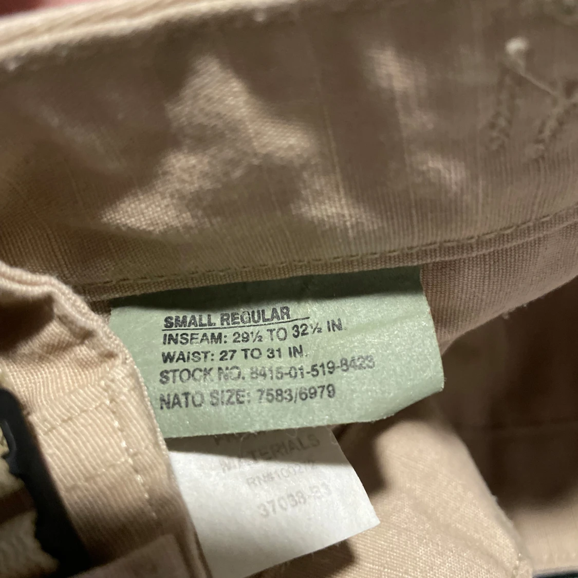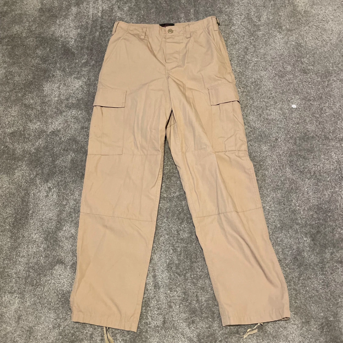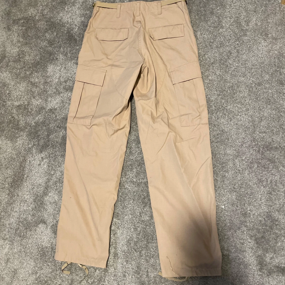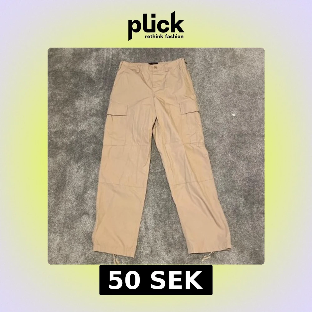 Säljer ett par beigea cargobyxor med flera praktiska fickor. Byxorna har en rak passform. Storleken är ca W30/L31, se sista bilden. Passar mig på 177 cm. Skriv för fler bilder eller frågor. Köpt second hand i Tokyo, mycket bra skick.