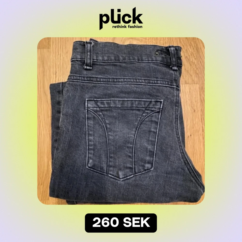 Low waisted jeans i svart/grå. Storlek 36-38, skulle säga att det är en större 36 men mindre 38 ❤️