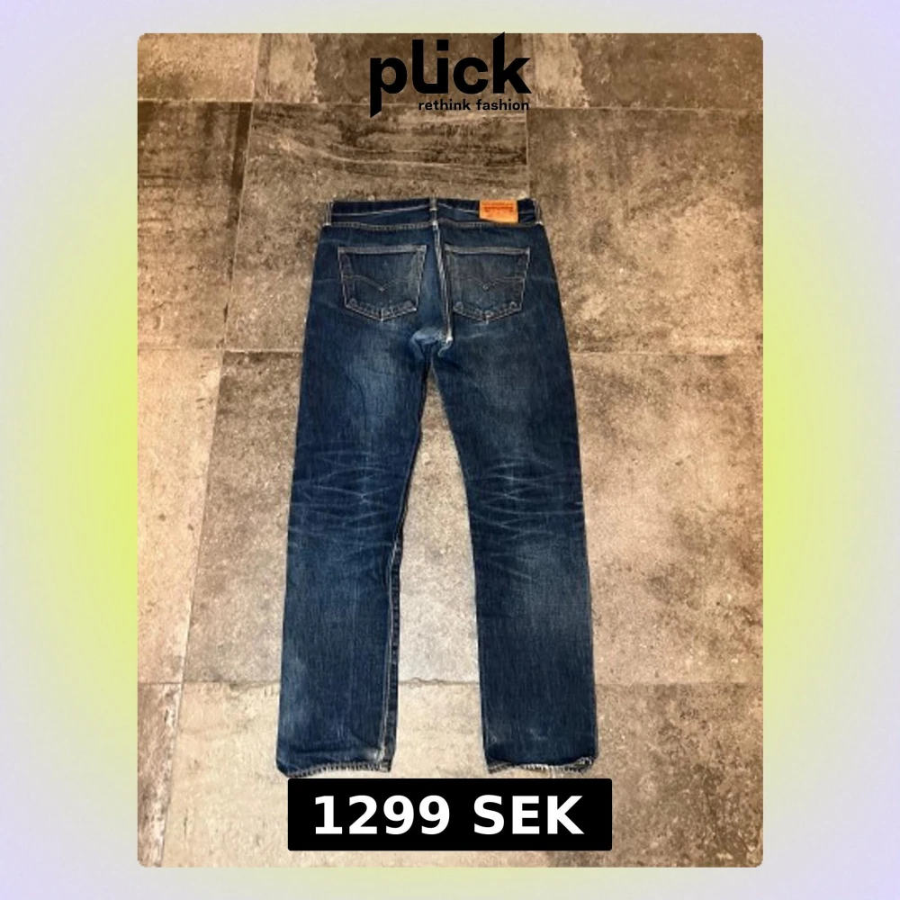 Tja! säljer mina tvär softa selvedge levis i white oak denim👏 Sjuka fades på dessa, skriv ifall. i har frågor🫡 Notera hålet i skrevet