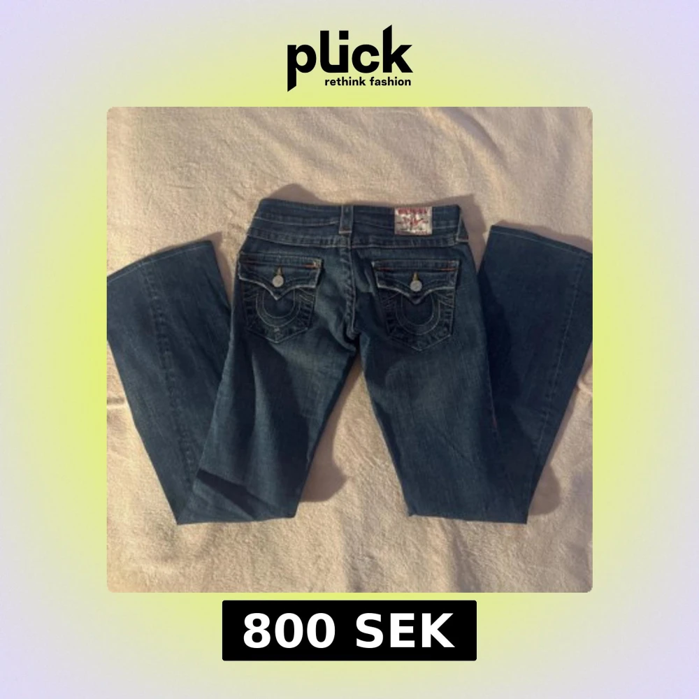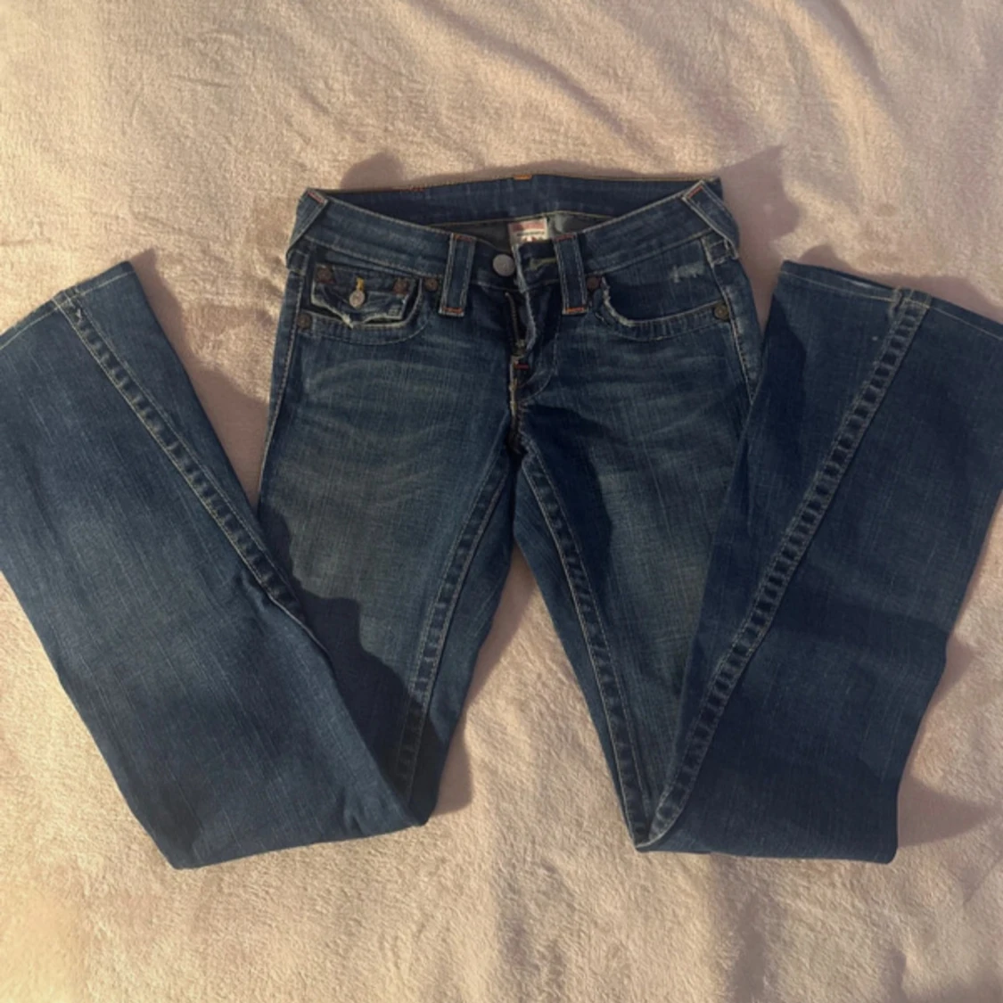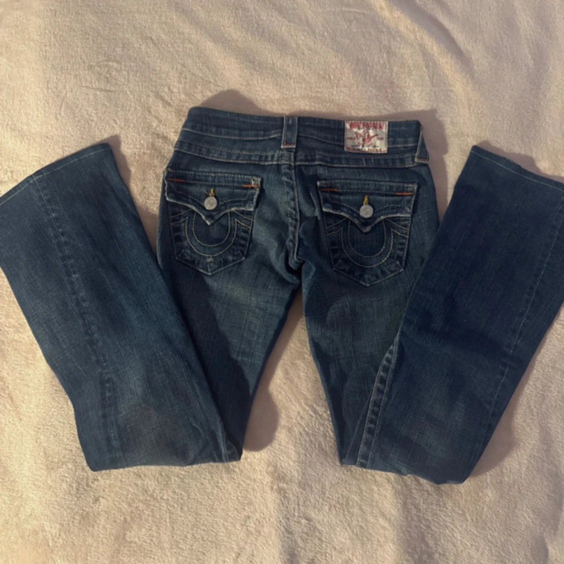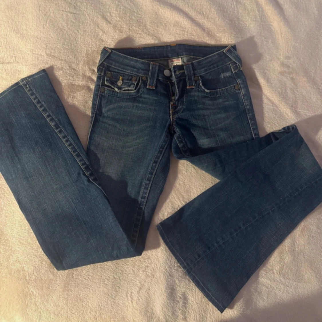 Snygga och vintage blå lågmidjade bootcut jeans från True Religion🫶 STORLEK: W25!!!
