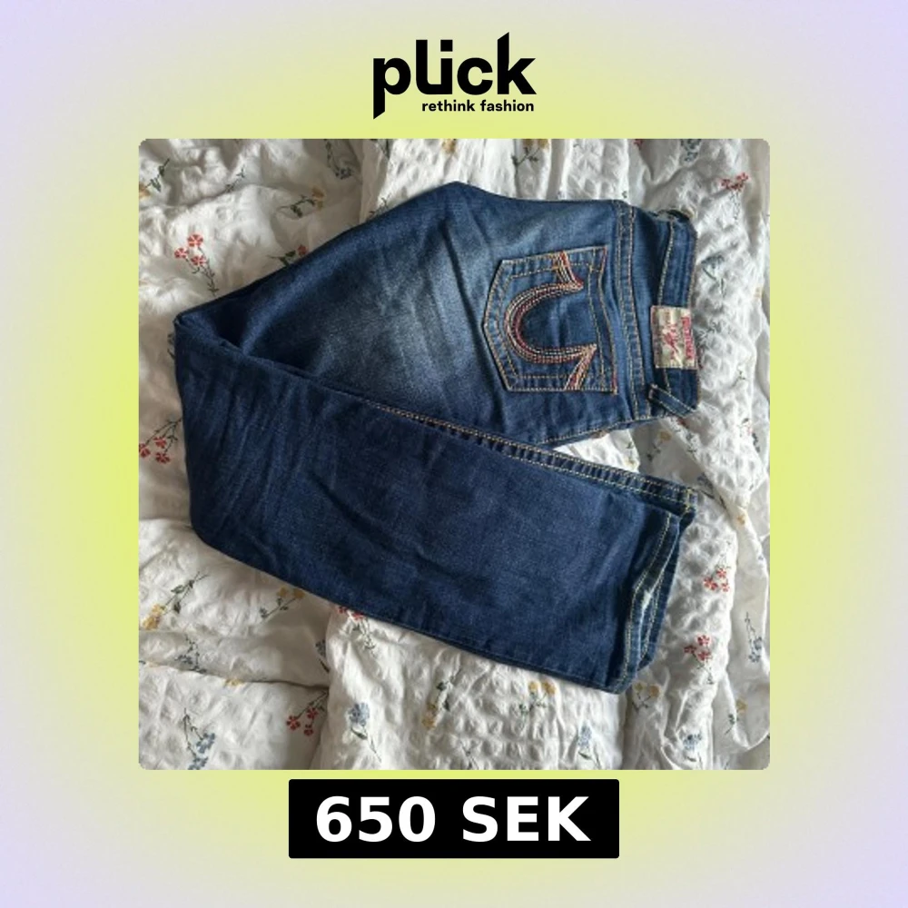Blå flare jeans fårn True religion. Lite slitna vid hälen. väldigt lågmidjade