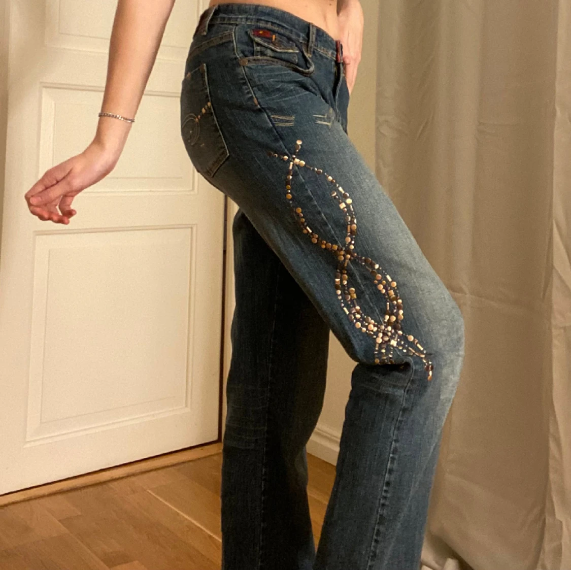 Dröm jeansen som jag hittade på second hand med lappen kvar där de stod ord.pris 1600 kr😱 Midja 38 cm rakt över och innerben 85 cm. Skriv för fler bilder🌟 👉Använd köp nu👈