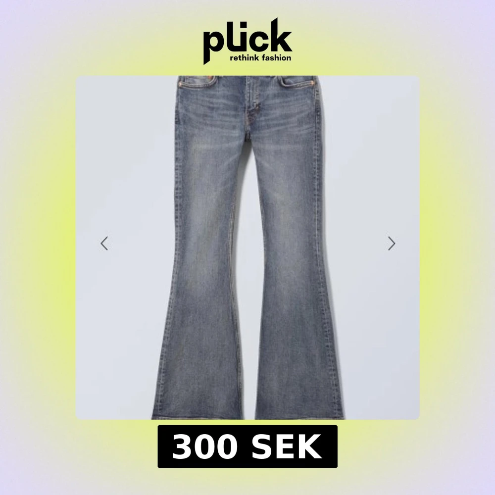 Snygga blå bootcut jeans från Weekday. Säljer dem då de inte passar. De är i mycket bra skick och har bara använts en gång. Jeansen är storlek W27 L32