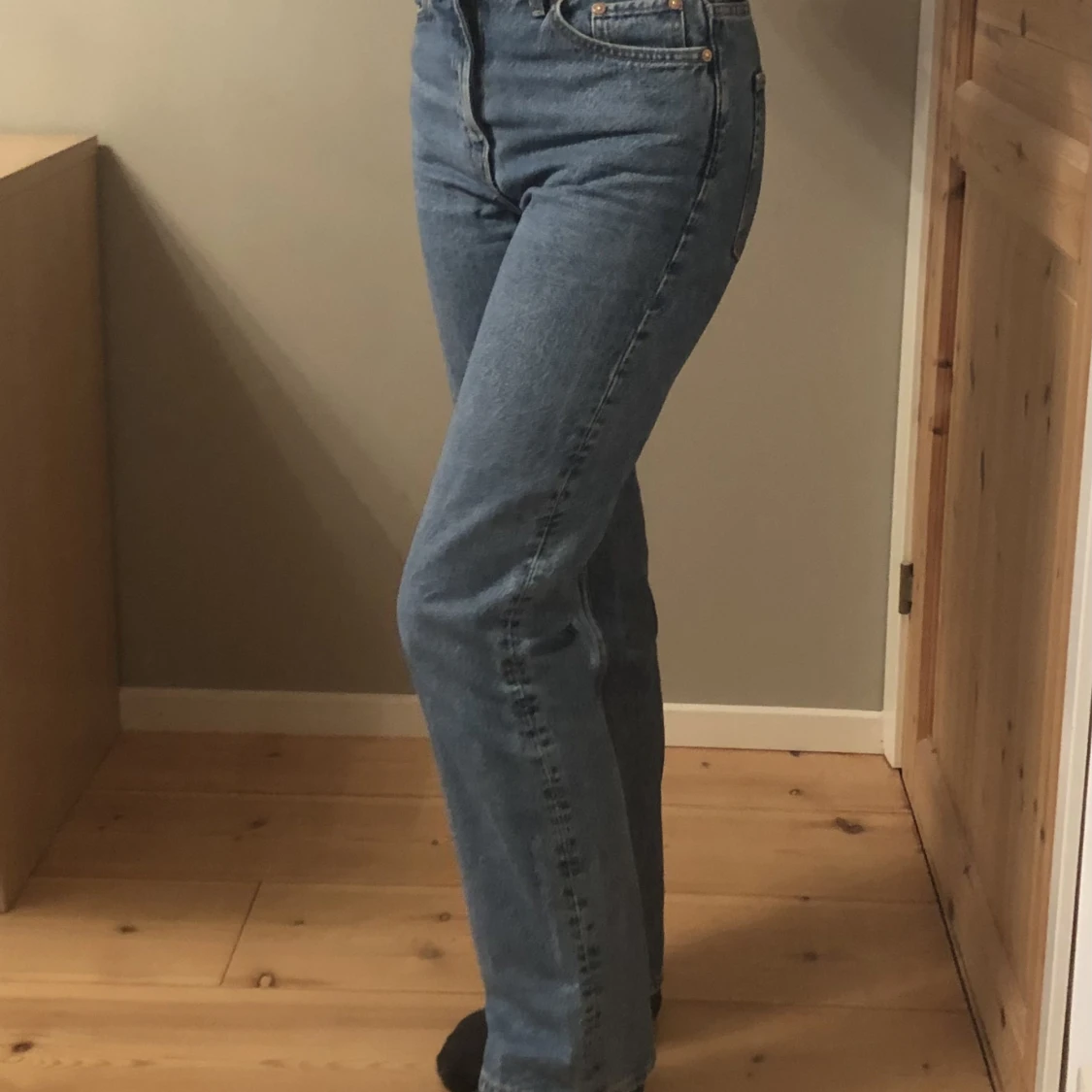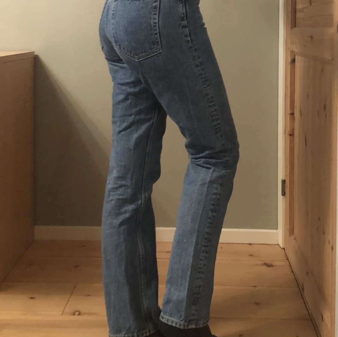 Assnygga raka mörkblå jeans som tyvärr ej passar längre:/ Sparsamt använda så fortfarande i så bra skick!! Långa i benen o passar perfekt till hösten