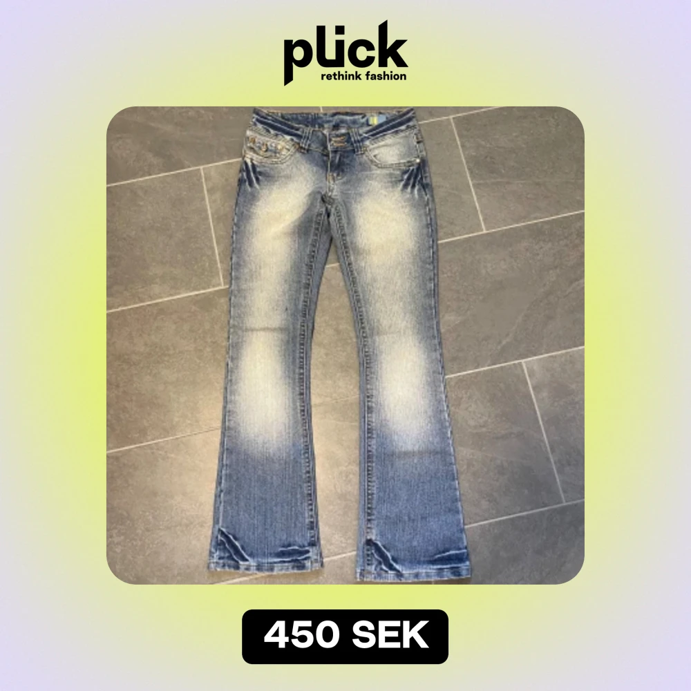 OBS! Inga bilder på! Midja:37/38 cm. Innerben:80cm. Vintage jeans, så snygga men tyvär för små på mig så därav säljs dom. Strl S uppskatta jag dom som. Söta detaljer och dom perfekta snygga lågmidjade jeansen. Tryck gärna på köp nu eller bundel🌸