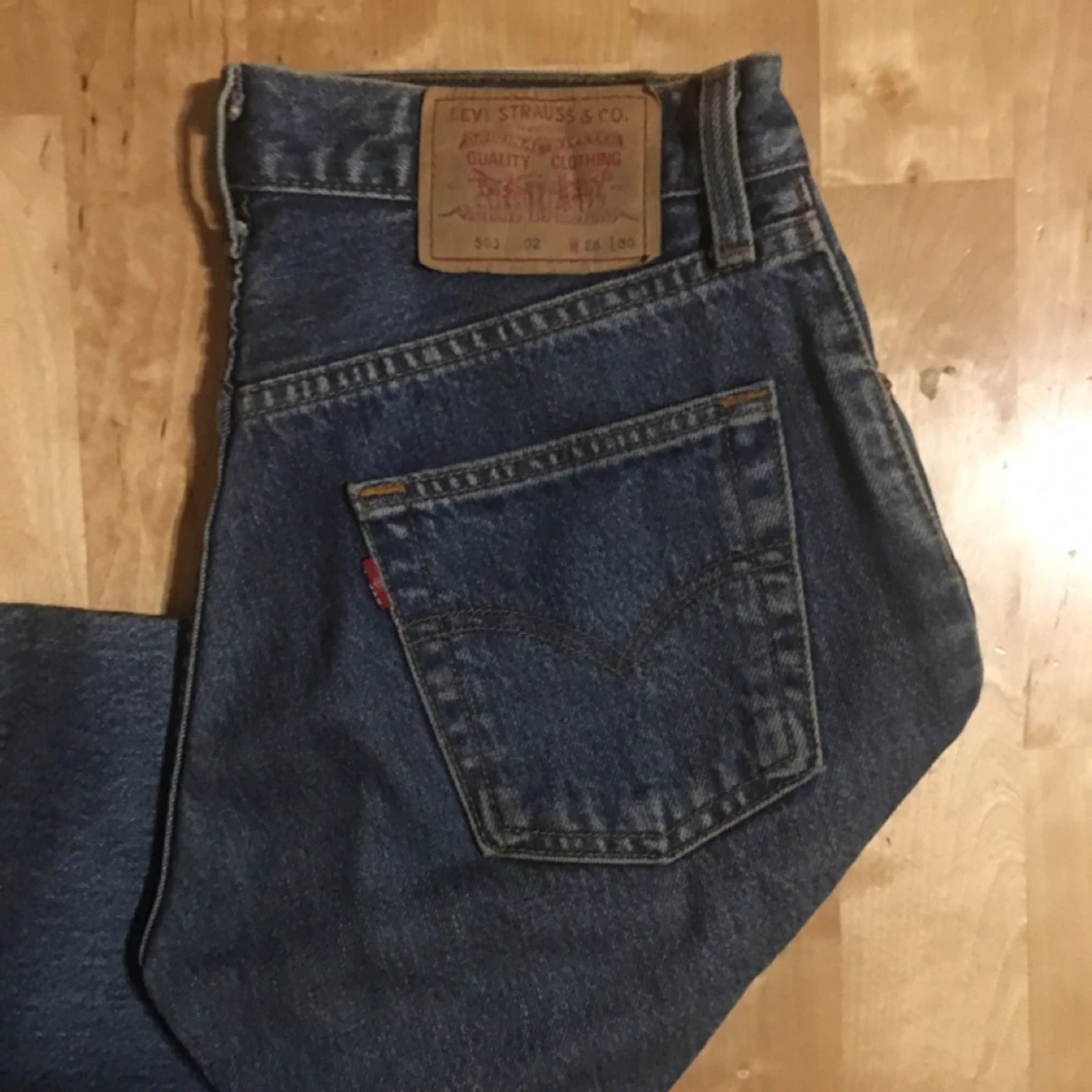 Levis 505 med zip, rak modell med hög midja! Passar en 26/27 midja 28 om man vill ha dom tajt.