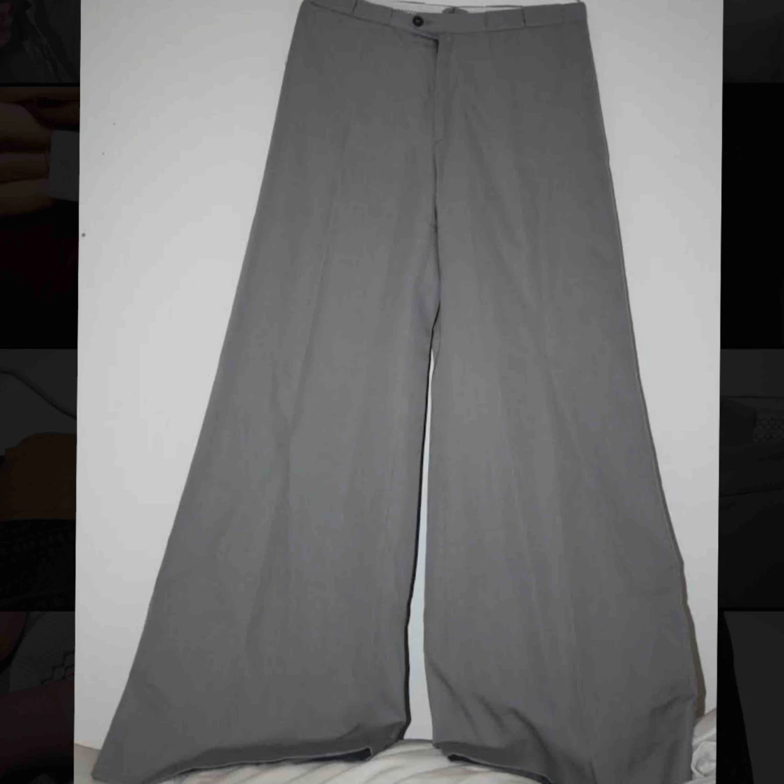 Super trevliga kostymbyxor i ull! Dem är dessvärre lite för små för mig, så jag tror dem är runt S då jag är S/M. (45% ull) Dem har härligt vida ben!