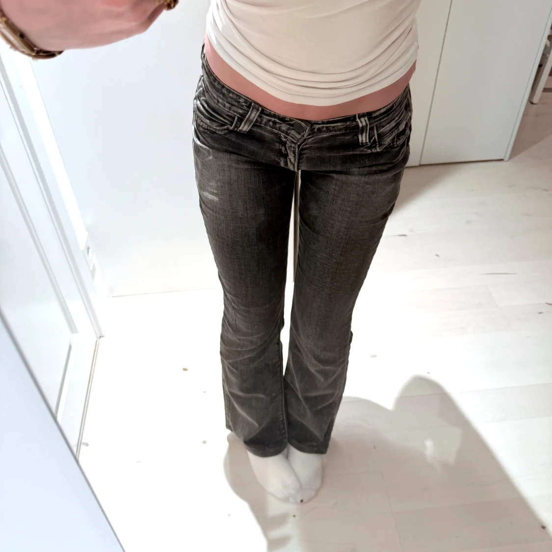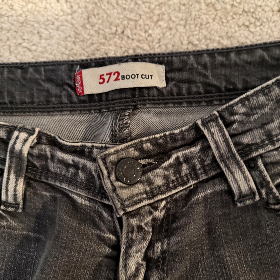 Snygga svarta Levis 572 bootcut super low waist jeans. Jag är 164 kanske och dem är lite korta för mig. Sjukt snygg passform är grå svarta.