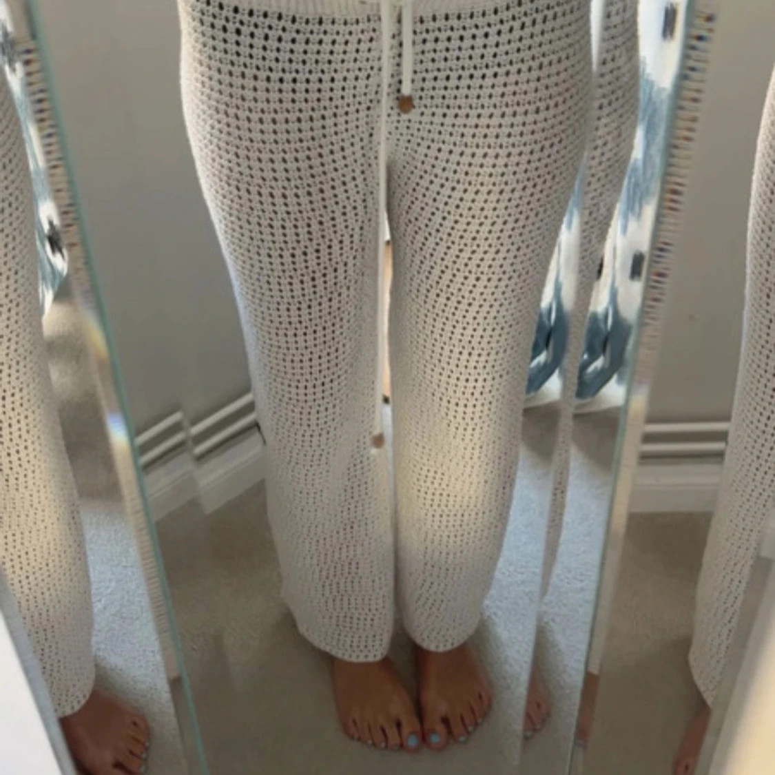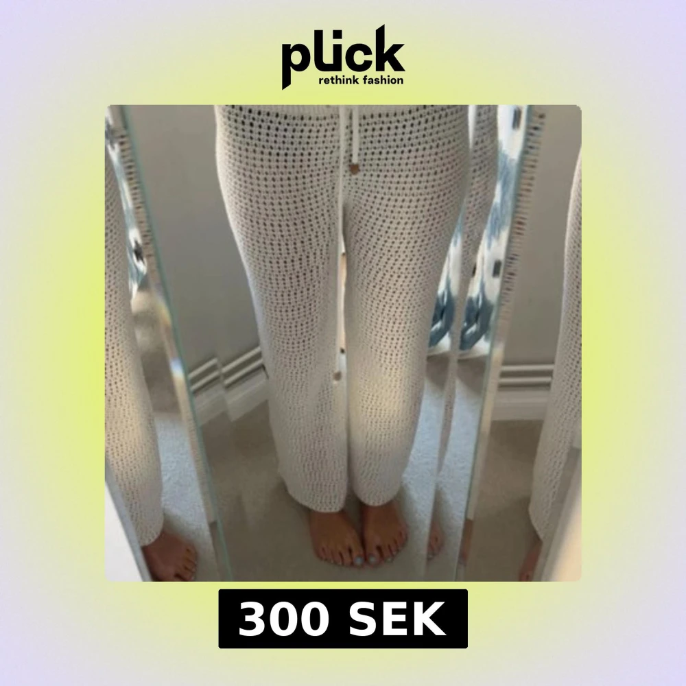 Säljer ett par virkade byxor, lite korta på mig men de har en utsväng modell och är stretchiga❤️ Jag är 174 för referens☀️