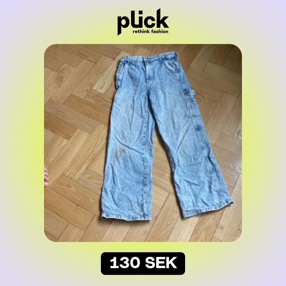 Det är ett par vid jeans från H&M med många fickor på sidorna. Den har storleken 146.