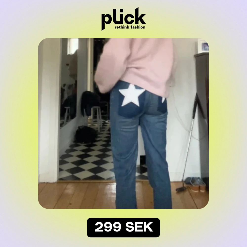 Jeans som jag har sytt om i grenen men har även tagit bort bakfickorna och sytt på vita jeansstjärnor. Priset går att diskutera vid en snabb affär