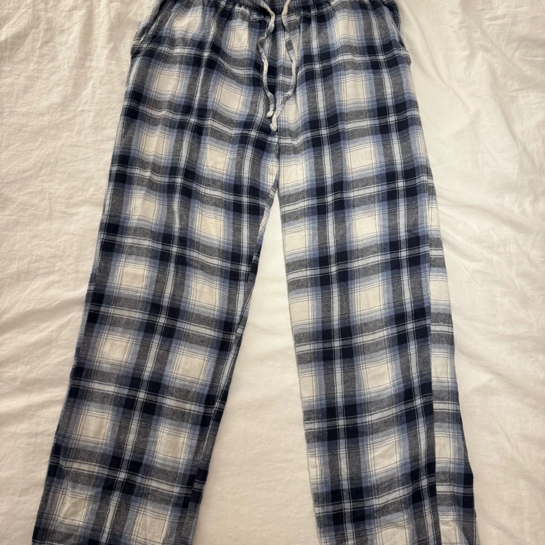 Supermysiga mjukisbyxor från 157 i blått och vitt rutigt mönster. Byxorna har dragsko i midjan och är raka i modellen, perfekta för chill dagar hemma. Tillverkade i mjukt bomullstyg för extra komfort.💖