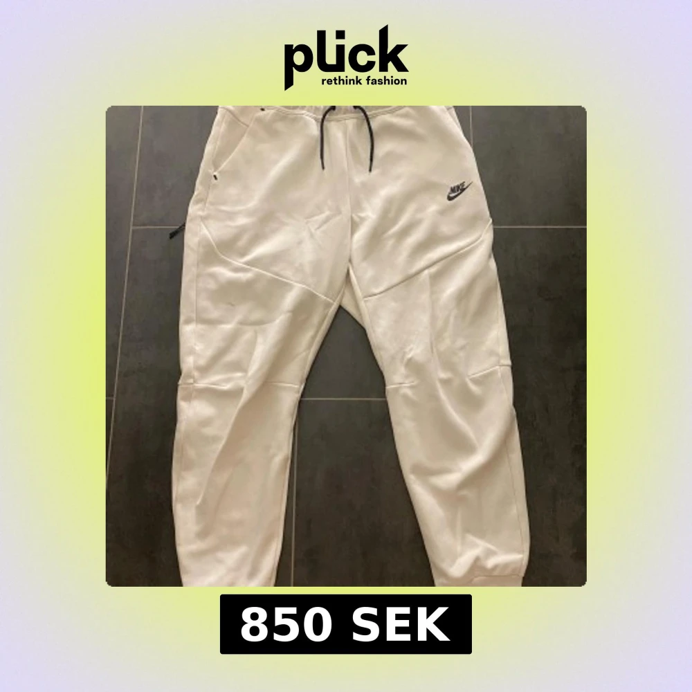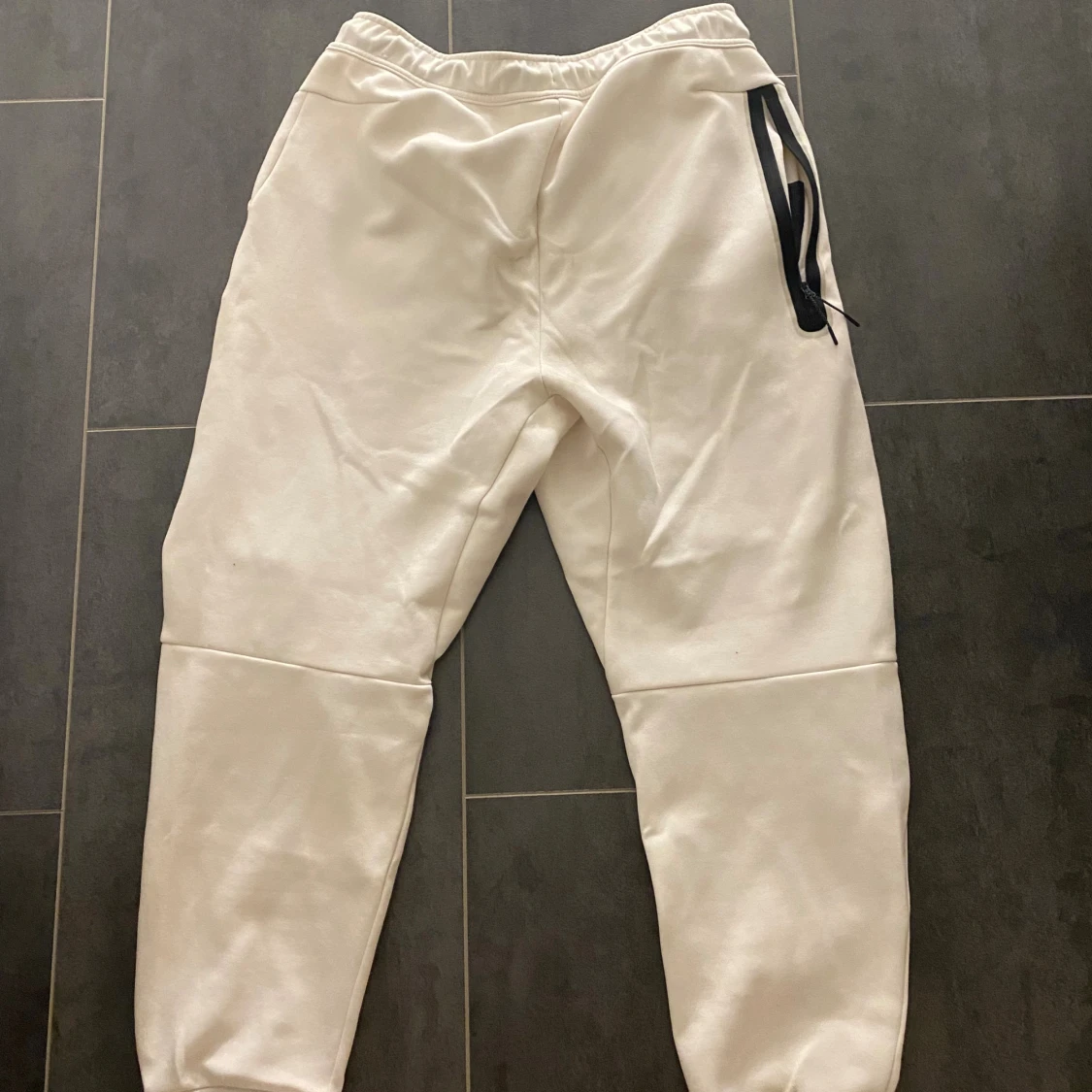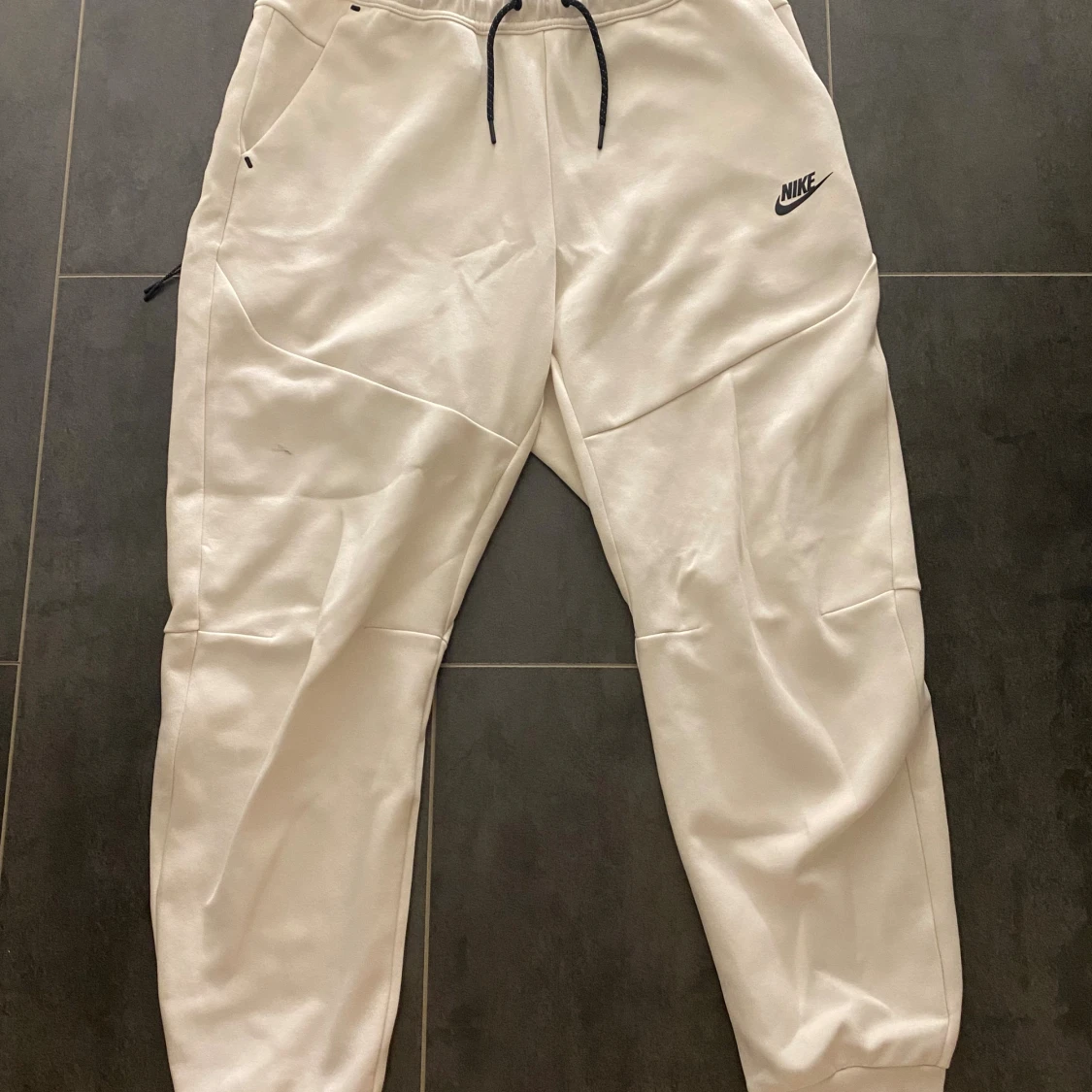 Tjena, Säljer ett par vita nike tech byxor. Använda:2-3 gånger. Äkta i storlek L. True to Size, Säljer dessa för de var ganska stora men säljer för ett riktigt bra pris. Hör av er vid intressen. Fraktar inom 1-2 dagar😀