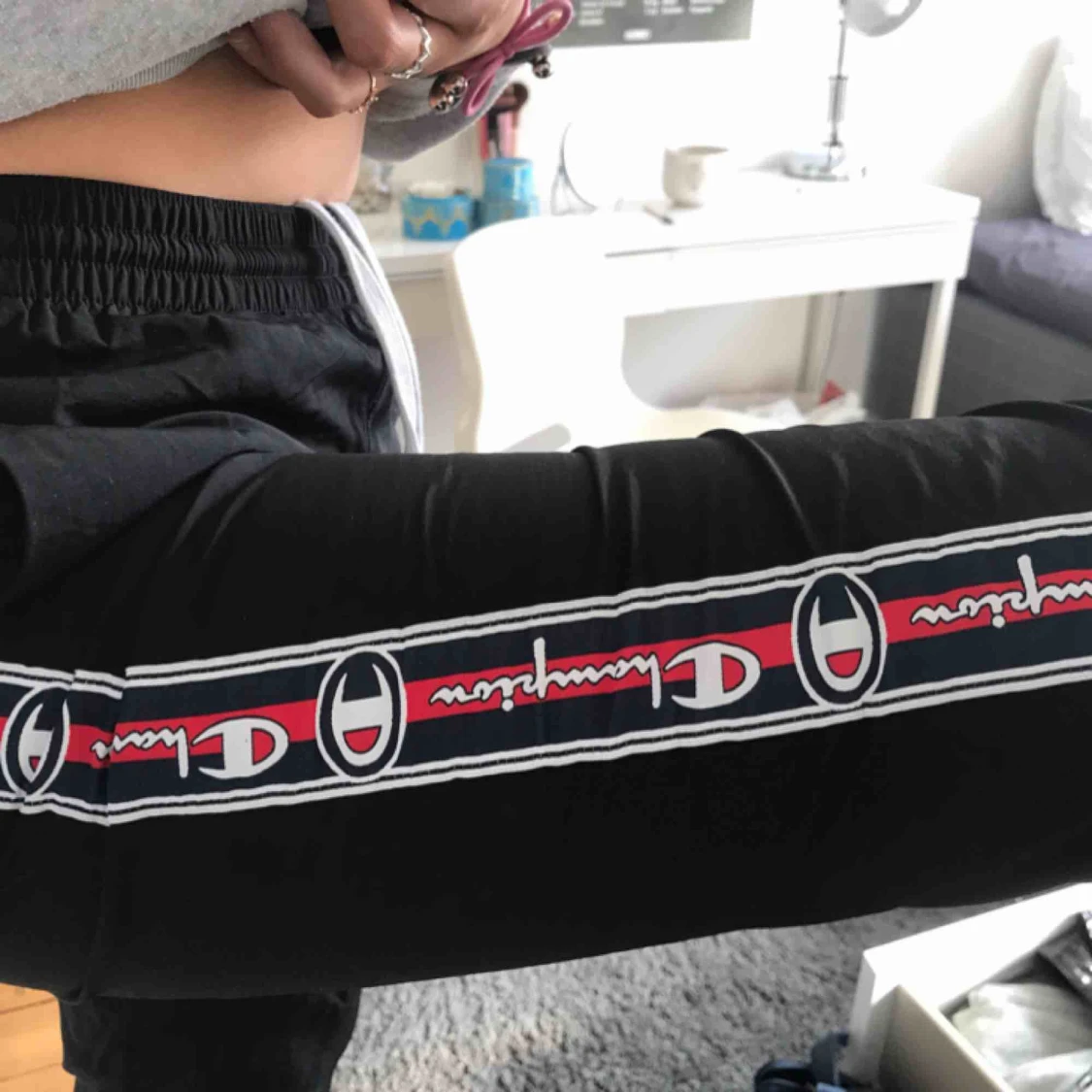 Superhäftiga brallor från champion!! Har endast använt dess ett fåtal gånger! De är svarta i ett ganska prassligt material med en strap på sidan med champion-loggan. Är köpta på herravdelningen men passar både tjej som kille:)