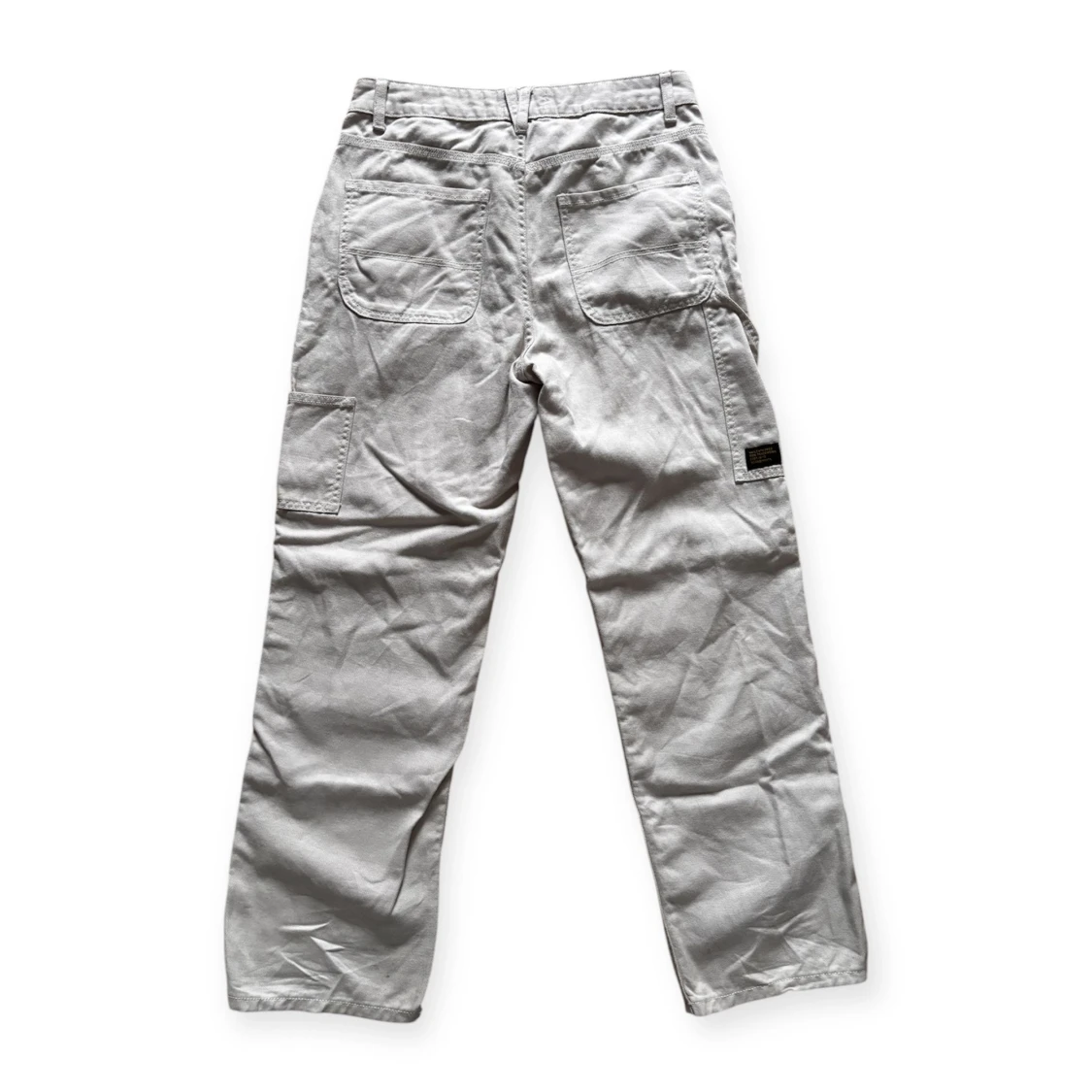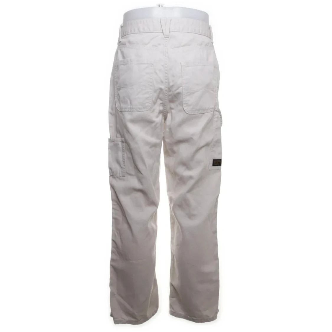 Snygga baggy vitbeige cargopants med flera praktiska fickor och en avslappnad passform. Perfekta för en casual look. Storlek S. Byxorna är i fint skick och passar som w30 l32.