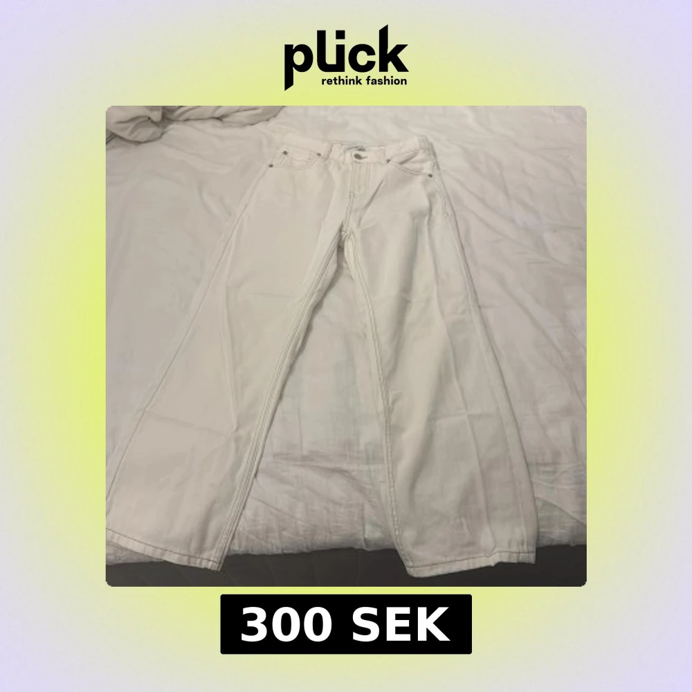 Säljer ett par vita baggy jeans från Calvin Klein. De har en avslappnad passform med raka ben och klassisk femficksdesign. Perfekta för en stilren och bekväm look. Perfekt nu inför våren och sommaren för att uppgradera din look. Jeansen är i nyskick och har ett nypris på ca 700 kr. Priset är diskuterbart
