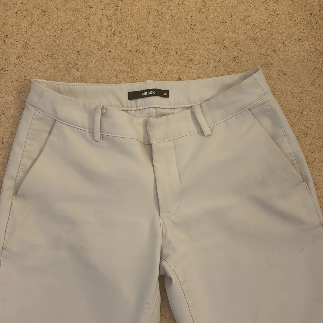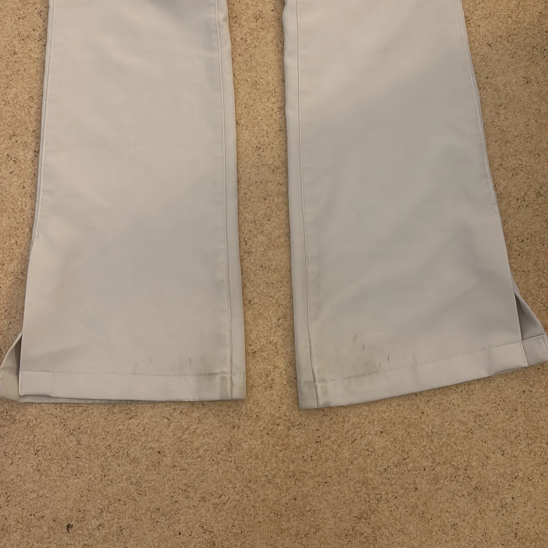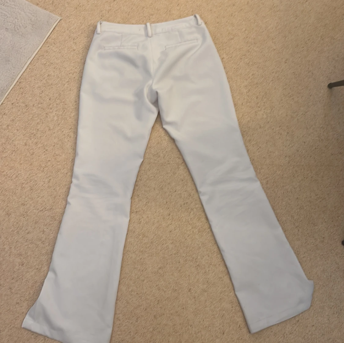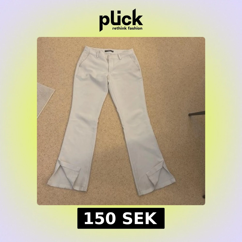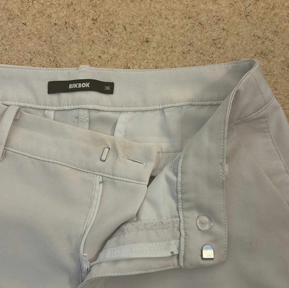 Snygga vita bootcut-byxor från BikBok med klassisk passform och låg midja. Byxorna har fickor fram, bälteshällor och stängs med dragkedja och knapp. Perfekta för en stilren look. OPS. De finns några defekter på byxorna men inget som jag skulle säga syns om man inte kollar på nära håll då förstås,(smutsfläckar). :)
