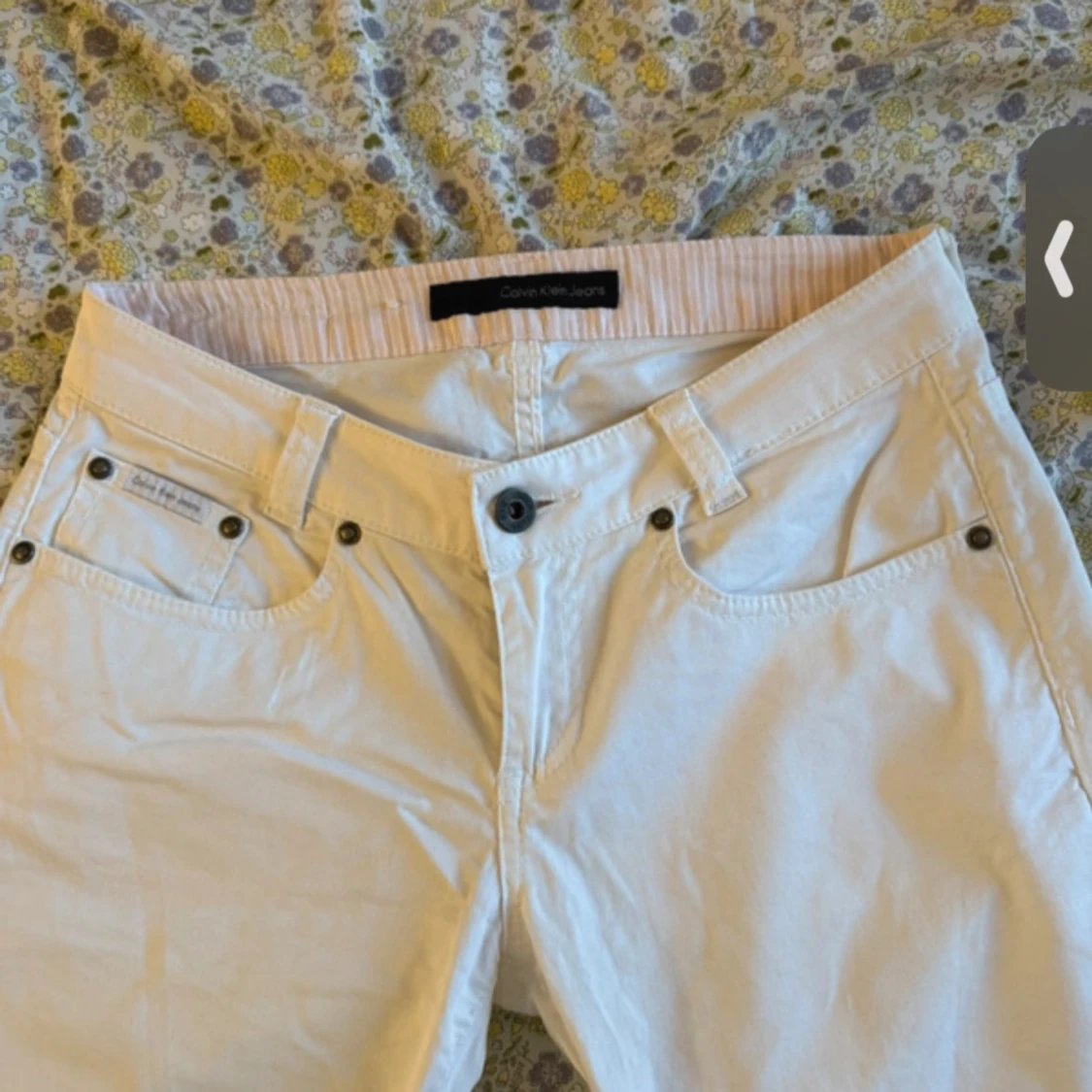 Snygga vita bootcut jeans från Calvin Klein Jeans. Modellen har klassisk femficksdesign, låg midja och bootcut. Waist 27 - L34