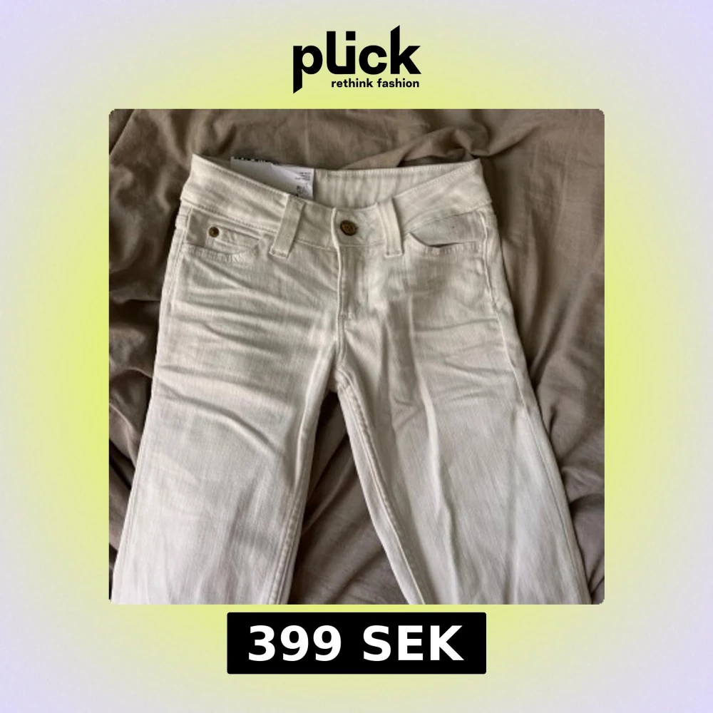 vita lowwaist jeans, köpte och var tyvärr försmå. dom har bara provats annars helt oanvända och legat kvar i beställnings påsen.🌟🍸storlek 24/32