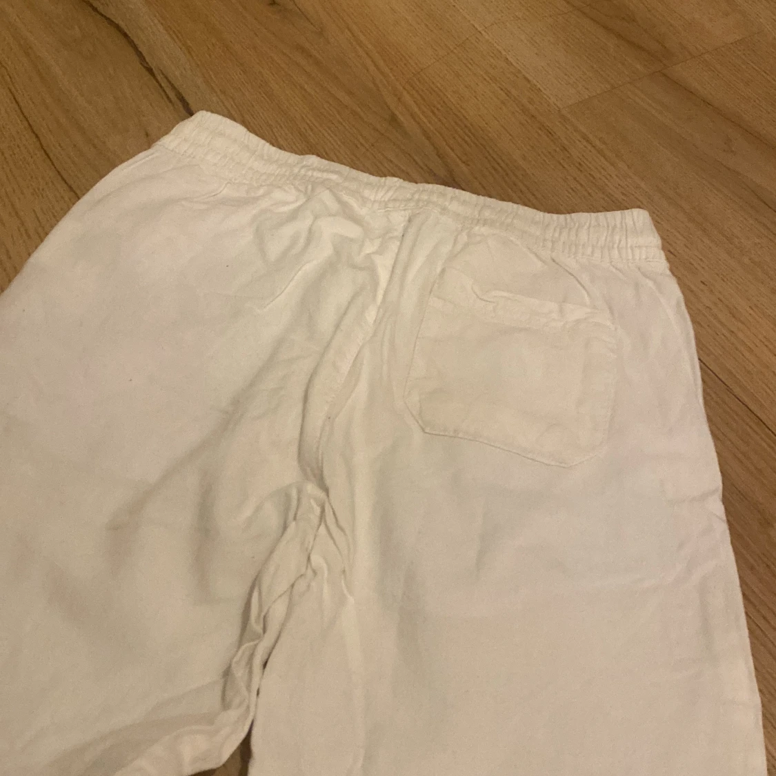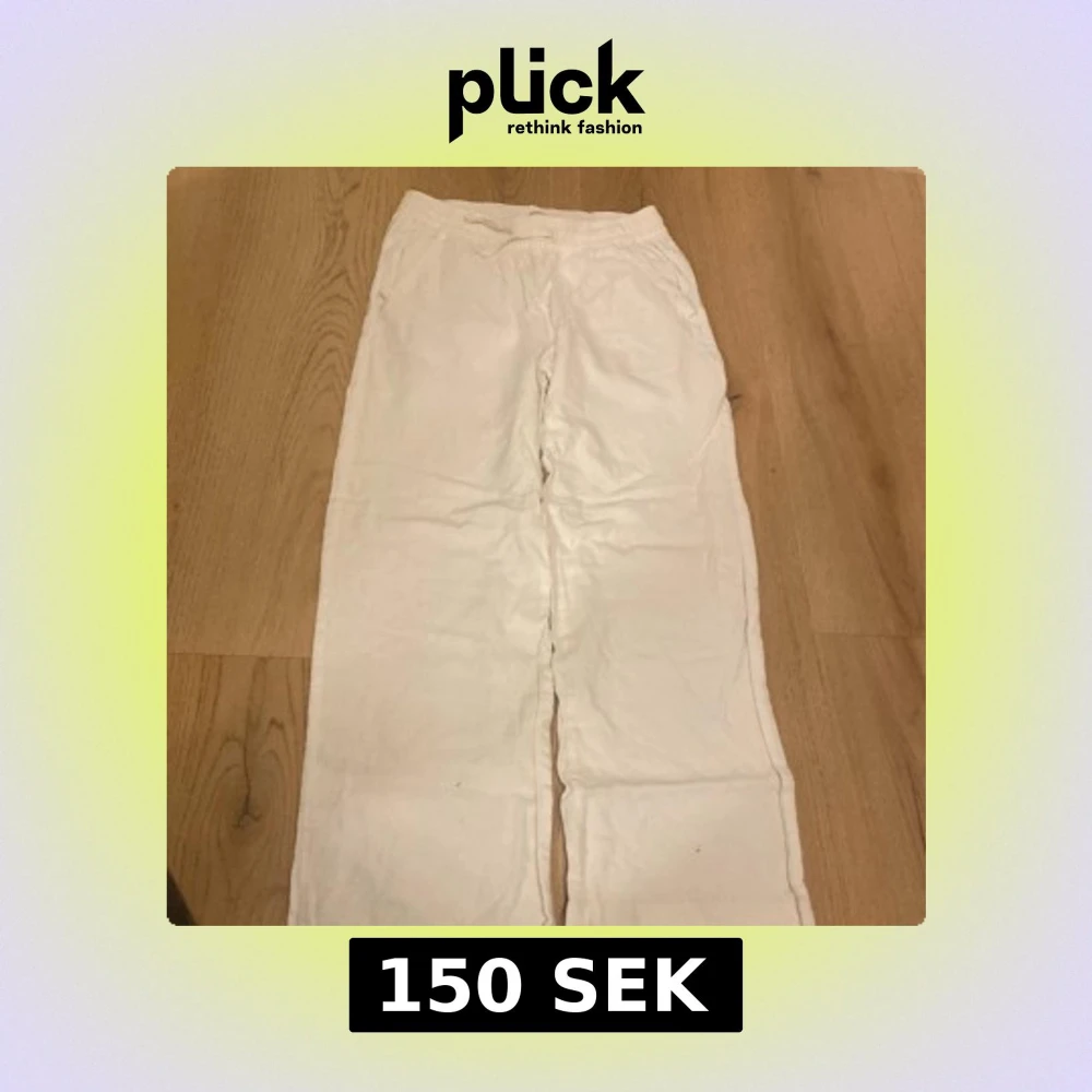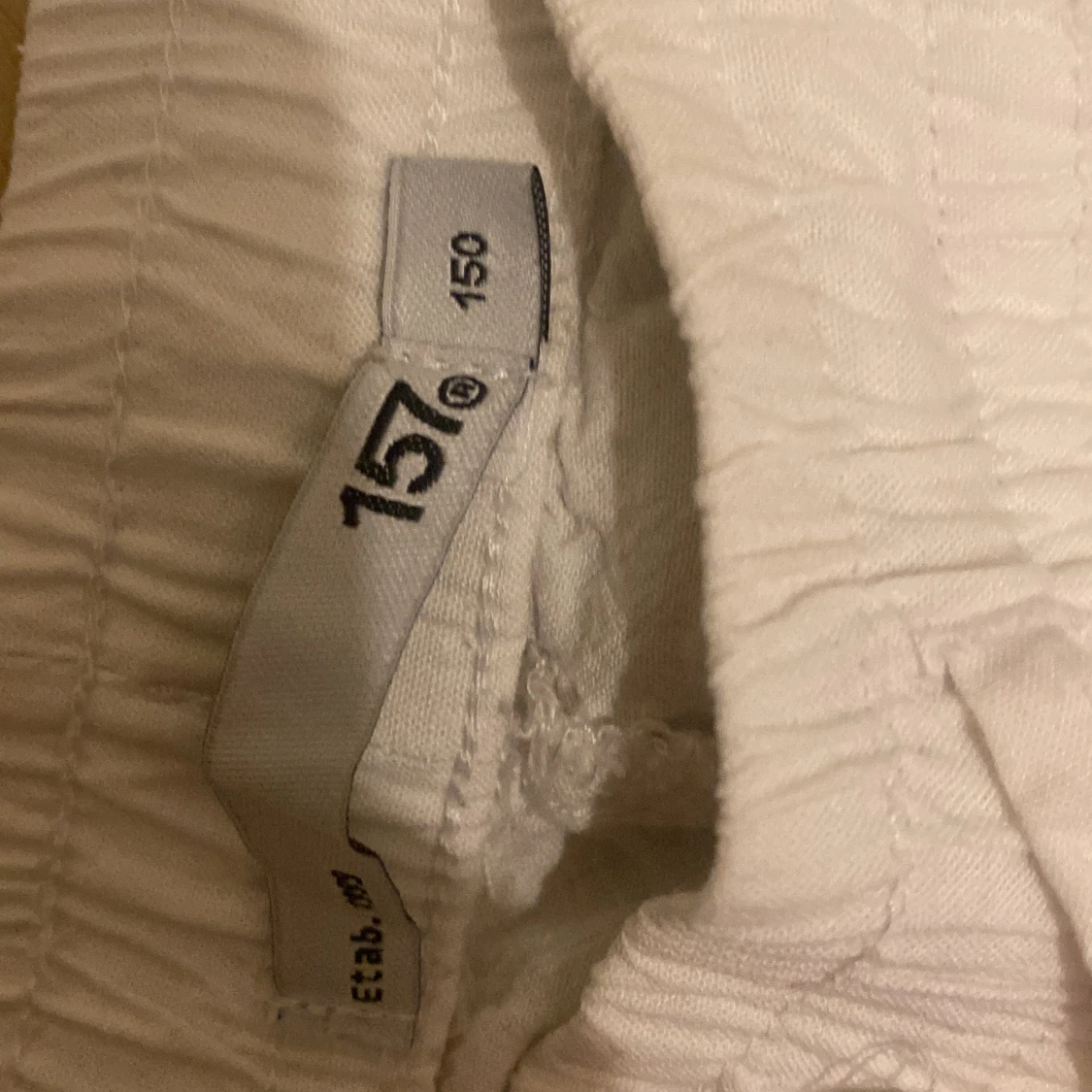 Säljer ett par vita byxor från 157. De har en elastisk midja och en bakficka. Perfekta för en avslappnad stil. Priset kan diskuteras!
