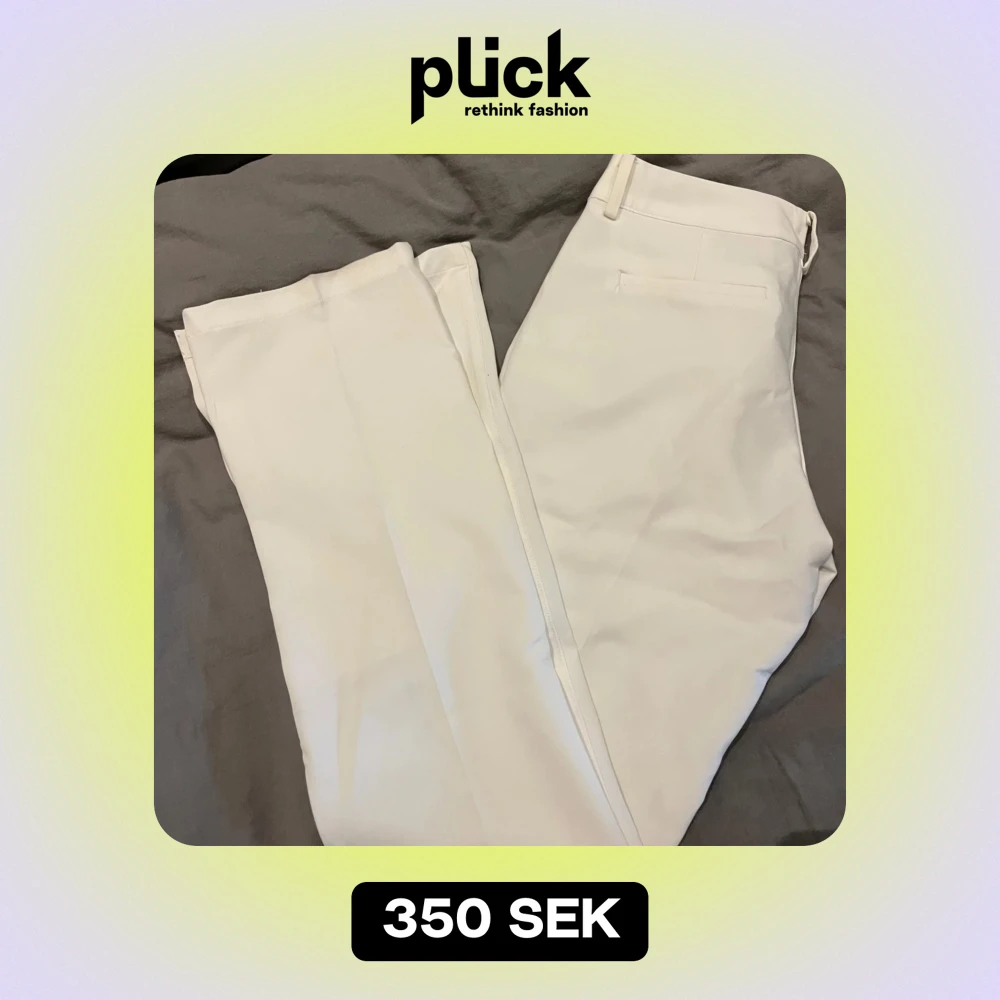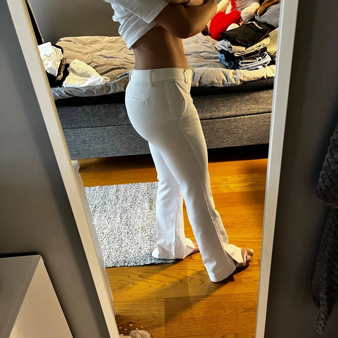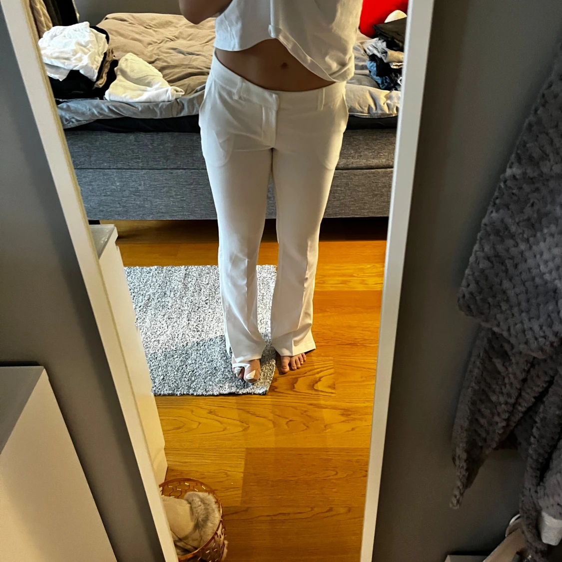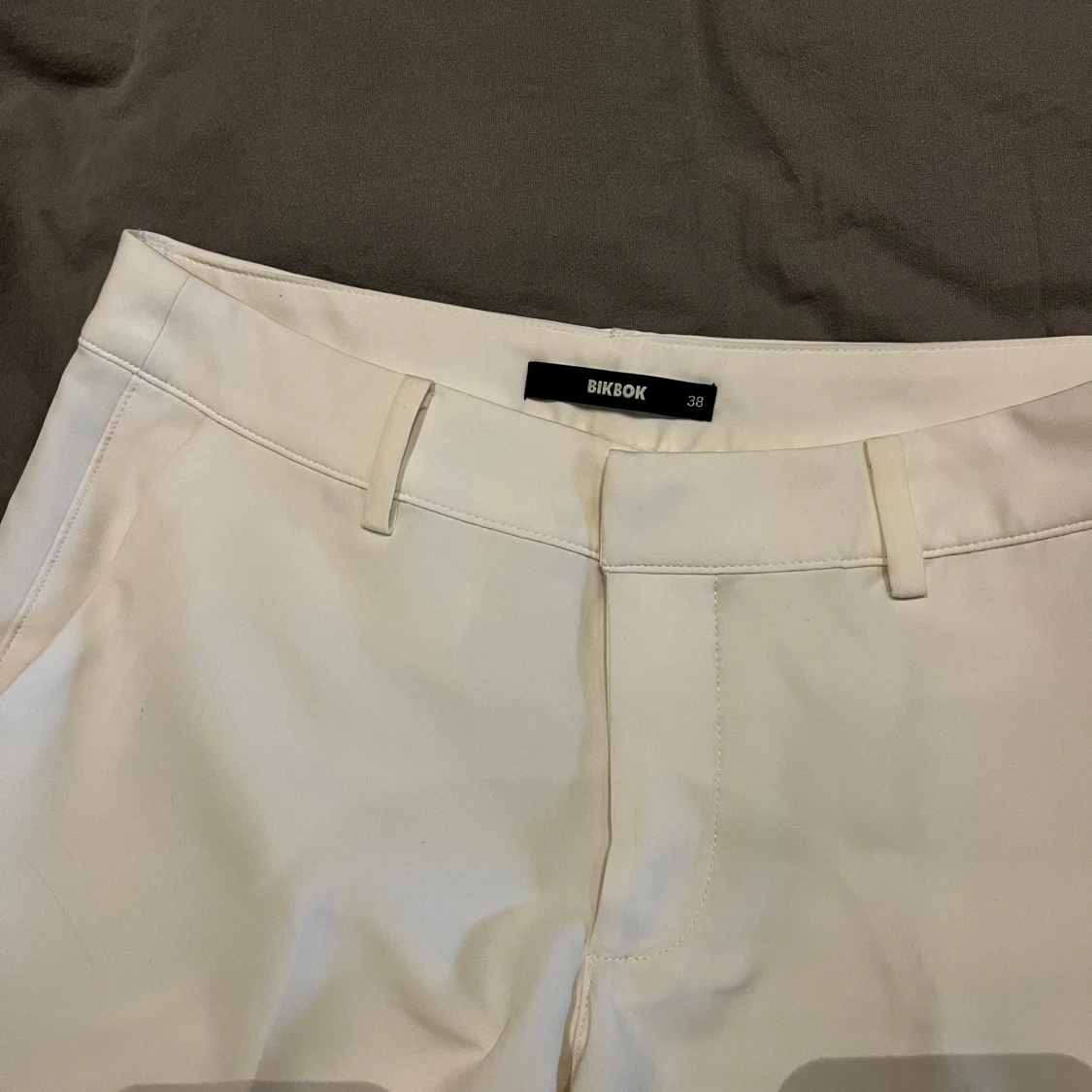 Säljer ett par vita byxor från BikBok i storlek 38. De är lågmidjade och har en snygg bootcut-stil.