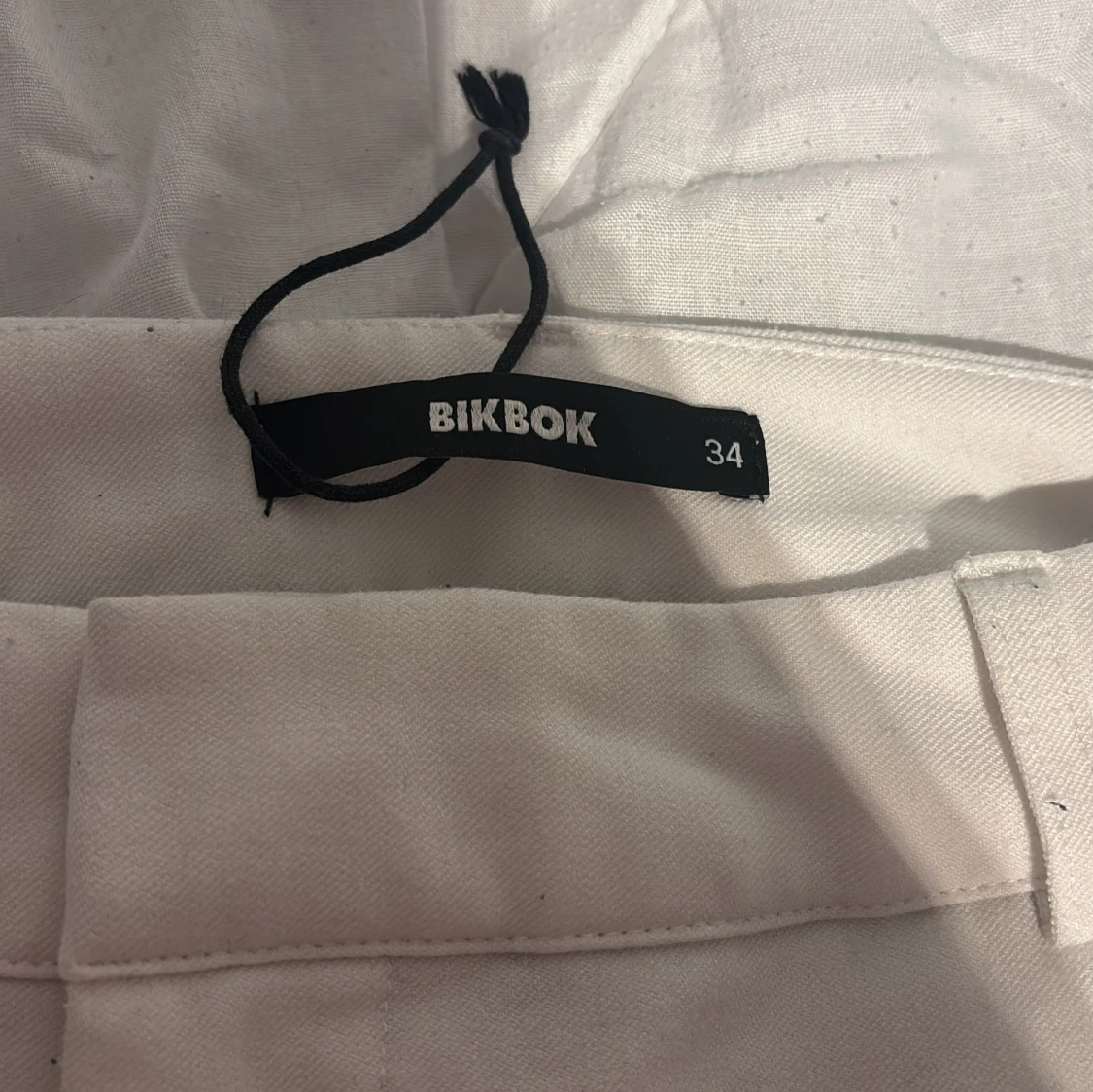 Snygga vita byxor från BikBok i en klassisk stil. De har en rak passform och är perfekta för en stilren look. Byxorna har en diskret dragkedja och knapp framtill. De är väldigt noppriga