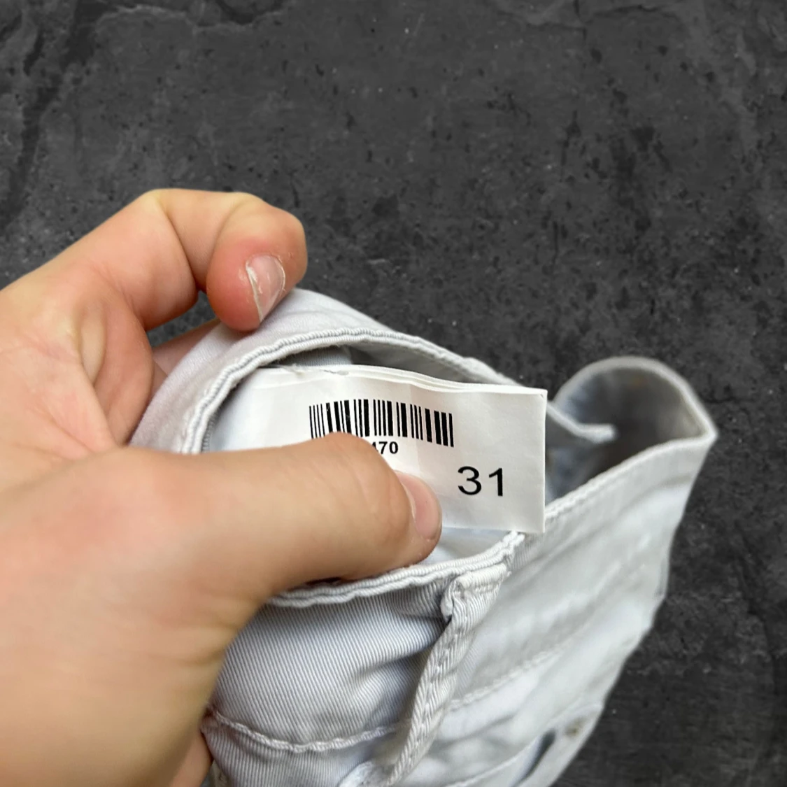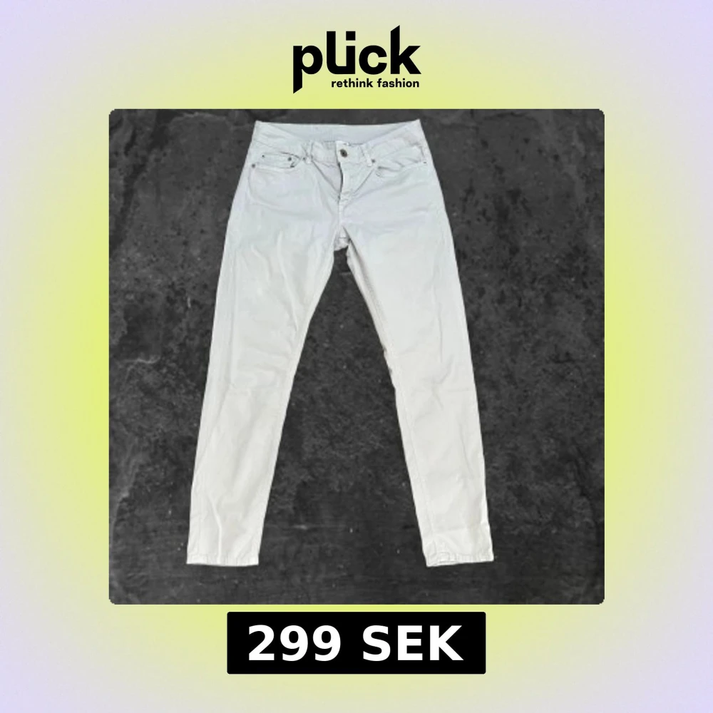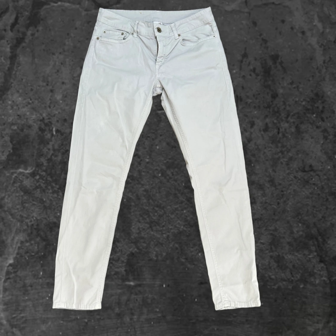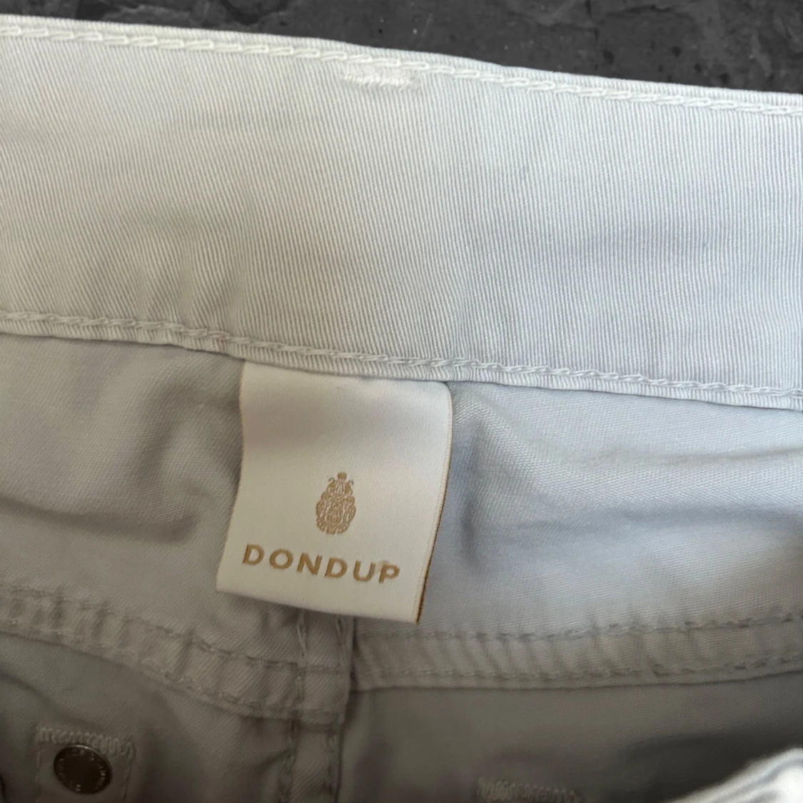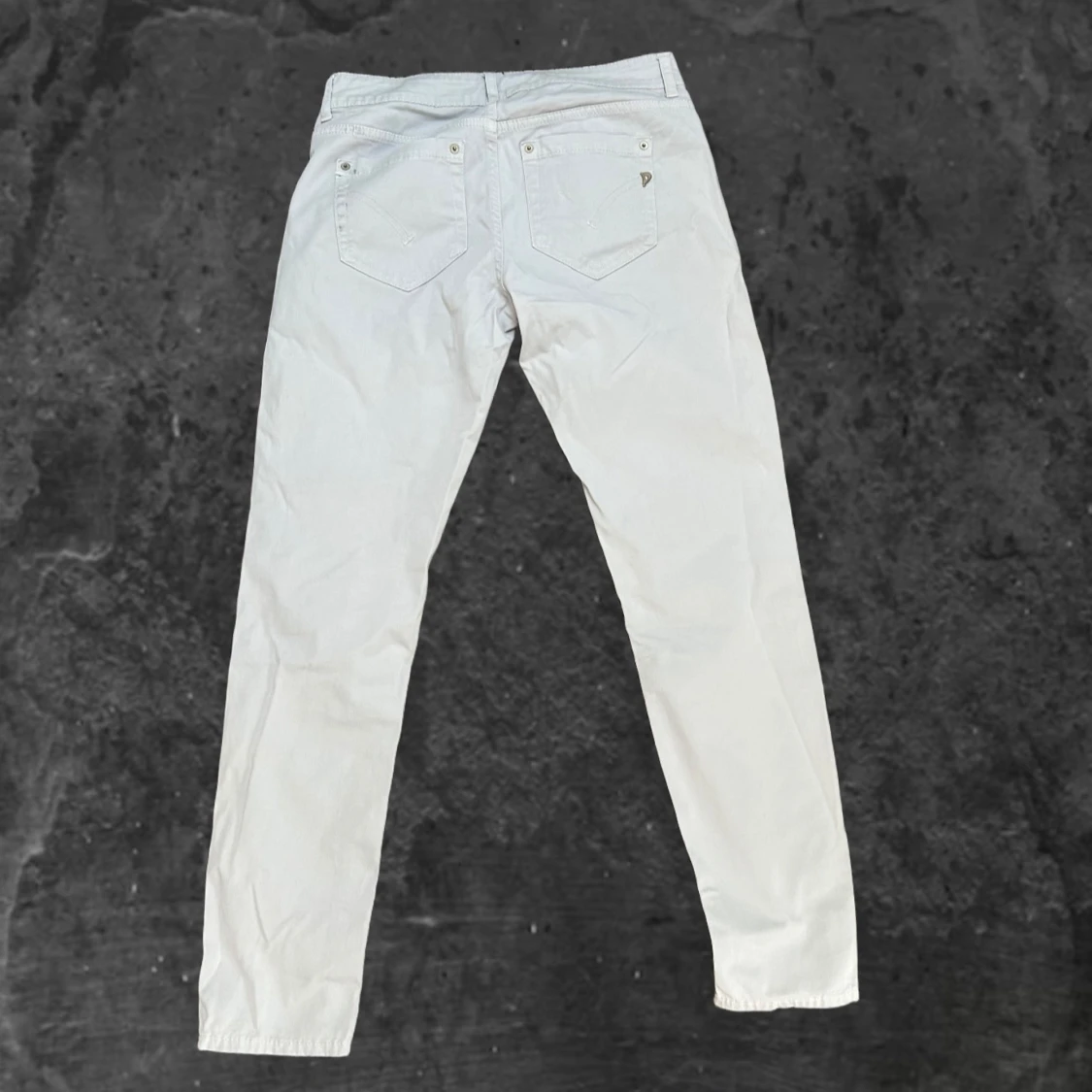 Snygga vita byxor från Dondup i storlek 31. De har klassisk femficksdesign, raka ben och normal passform. Byxorna är tillverkade i ett mjukt bomullsmaterial och har diskreta detaljer med metallnitar och logotyp på bakfickan.