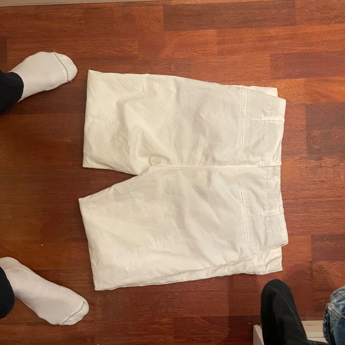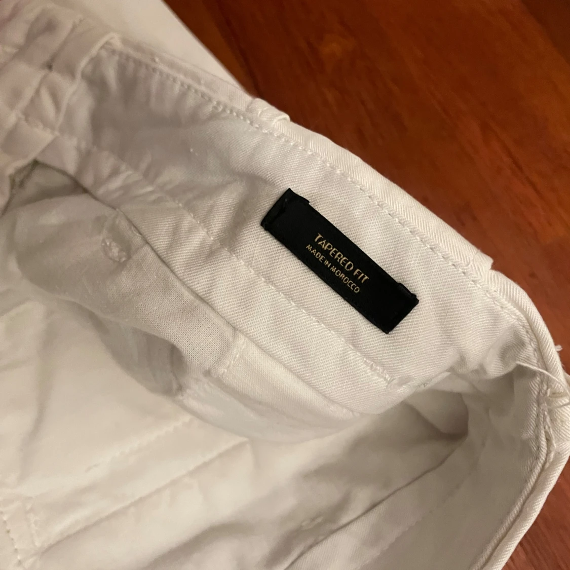 Snygga vita byxor från Massimo Dutti i en tapered fit. Perfekta för en stilren look. Byxorna har knappar och är tillverkade i ett bekvämt material.