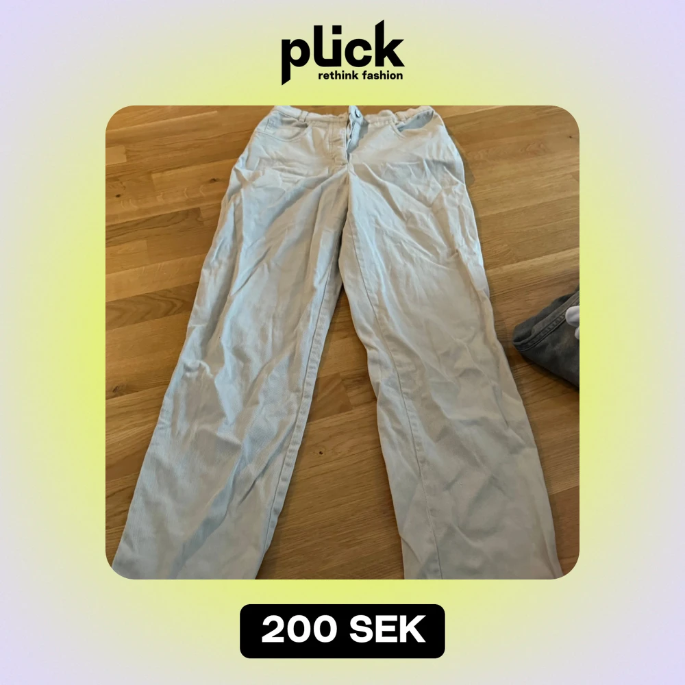 Säljer ett par vita byxor i bra skick. De har en snygg broderad detalj på bakfickan och stängs med dragkedja och knapp. Perfekta för vår och sommar!
