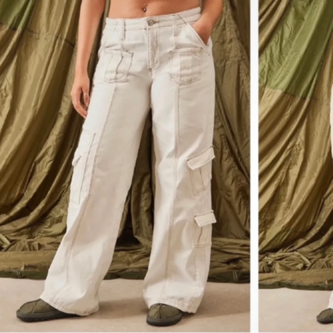 Vita cargopants köpta från urban outfitters i bra skick <3 använda några fåtal gånger & de passar bra i längden på någon som är 168-172 cm lång. De är i storlek M/38