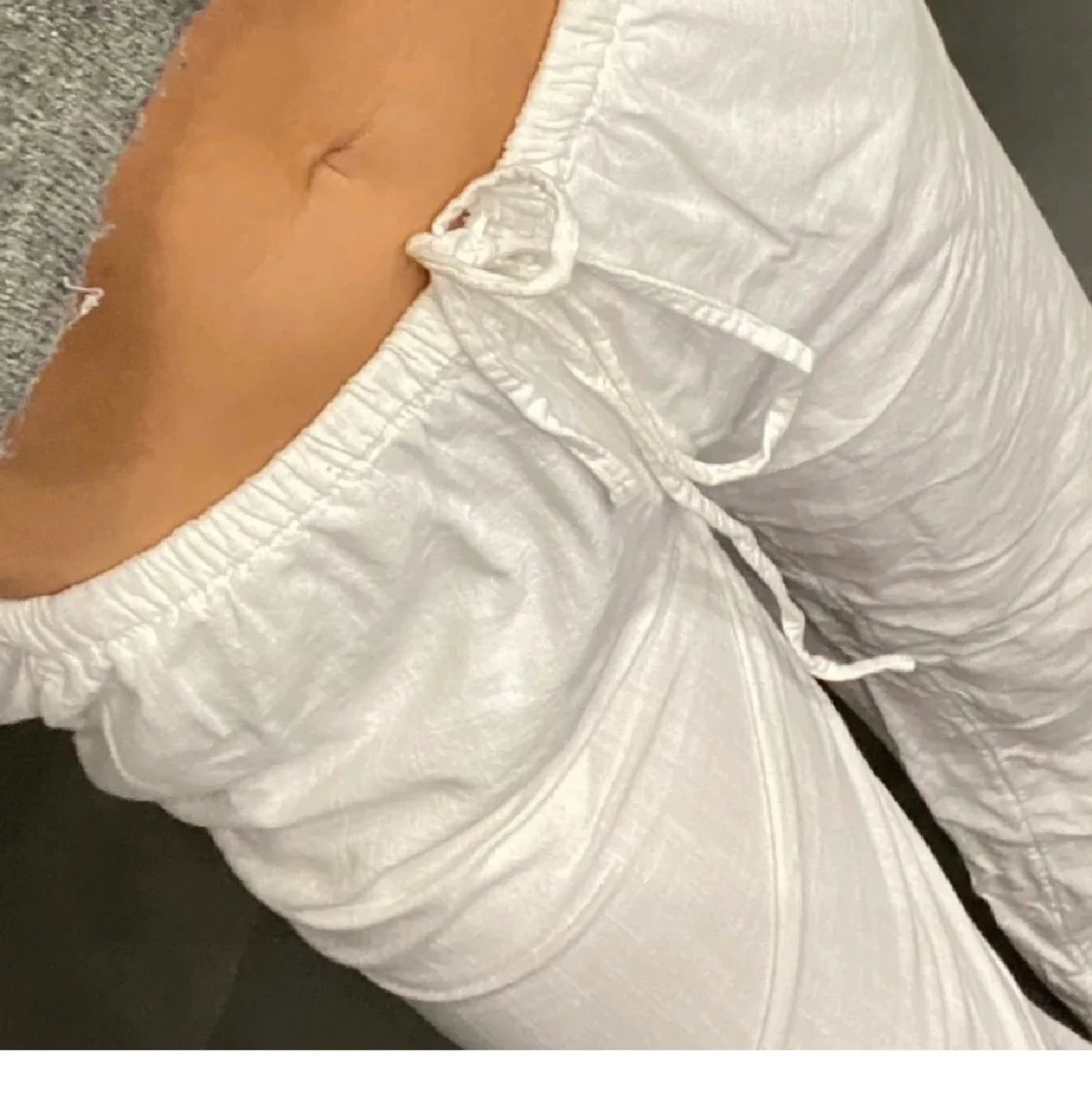 Säljer mina vita linnebyxor för att dom är för korta för mig dom är i bra skick och är slutsålda