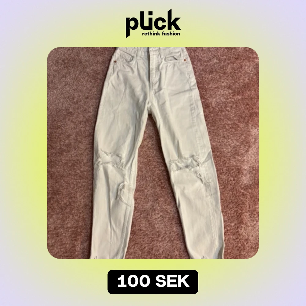 Vita jeans från zara i storlek 32, hög midjade. Bra jeans matrial, och väldigt vita utan fläckar.