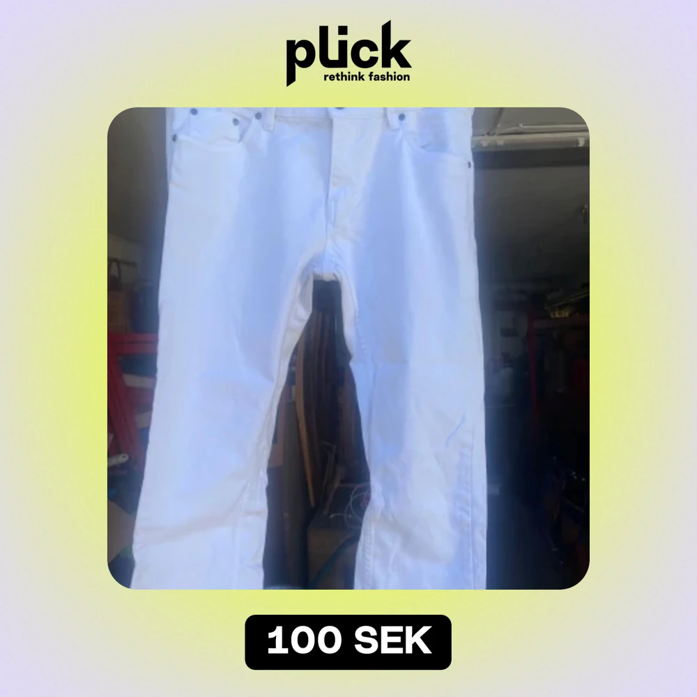 Säljer ett par snygga vita jeans från Ellos. De är i storlek 46 och har en klassisk femficksdesign. Perfekta för en stilren look, oavsett om det är till vardags eller fest. Passar bra till både sneakers och klackar!