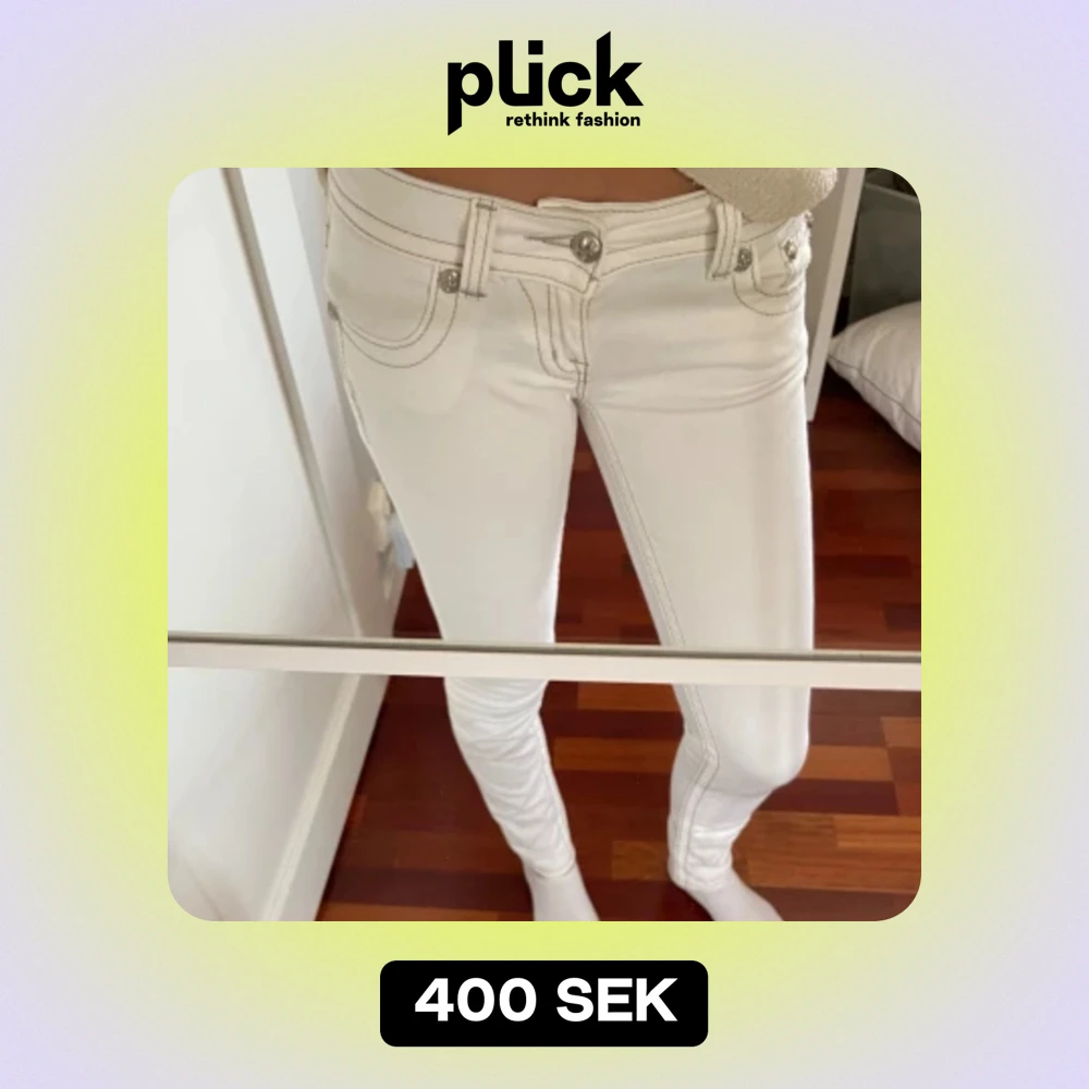 Säljer ett par snygga vita jeans från Miss Me i storlek 25. De är lågmidjade och har en tight passform som verkligen framhäver figuren. Jeansen har coola detaljer med knappar och broderier på bakfickorna. Perfekta för både vardag och fest!