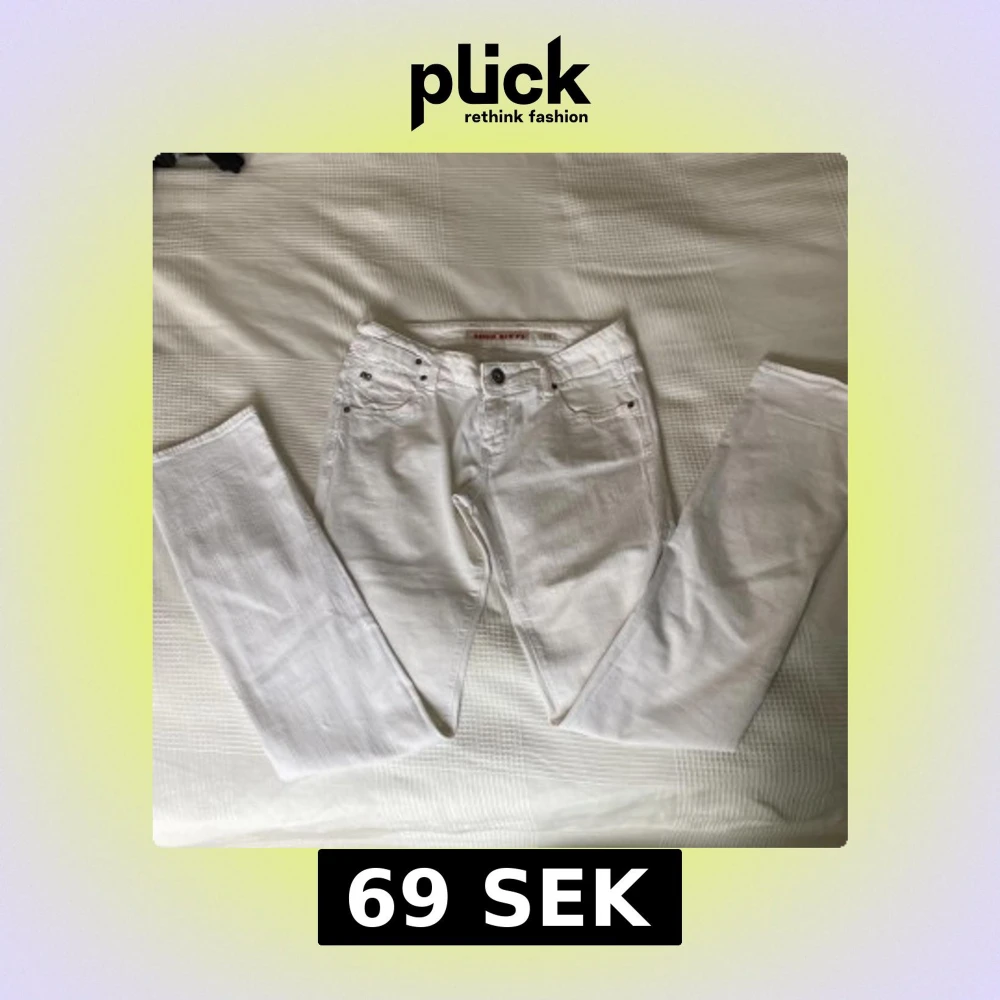 Snygga vita jeans från Miss Sixty i klassisk femficksmodell. Raka ben och normal passform, med metallogo bak på ena fickan. Jeansen har bälteshällor och stängs med knapp och dragkedja. Perfekta för dig som vill ha en fräsch och stilren look.