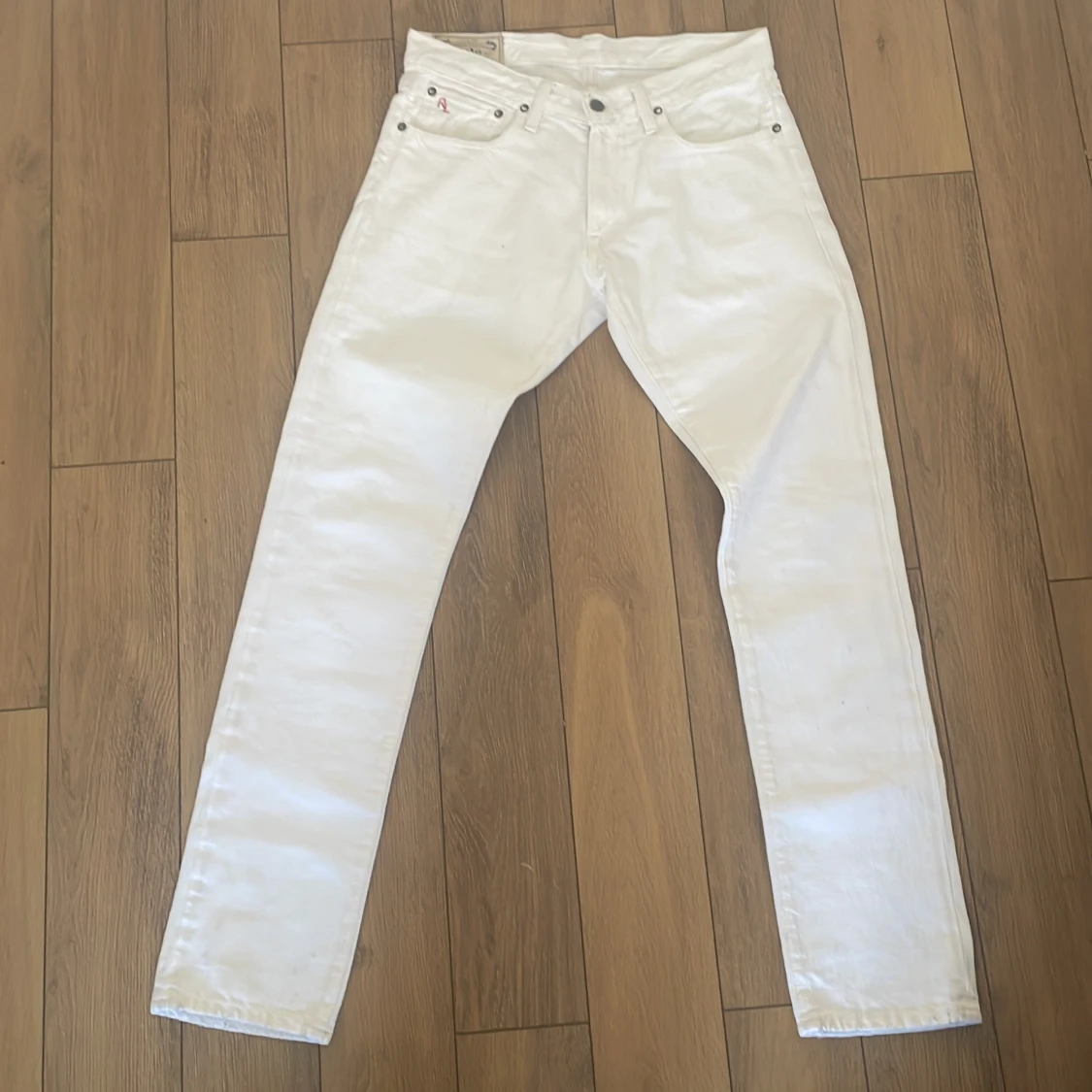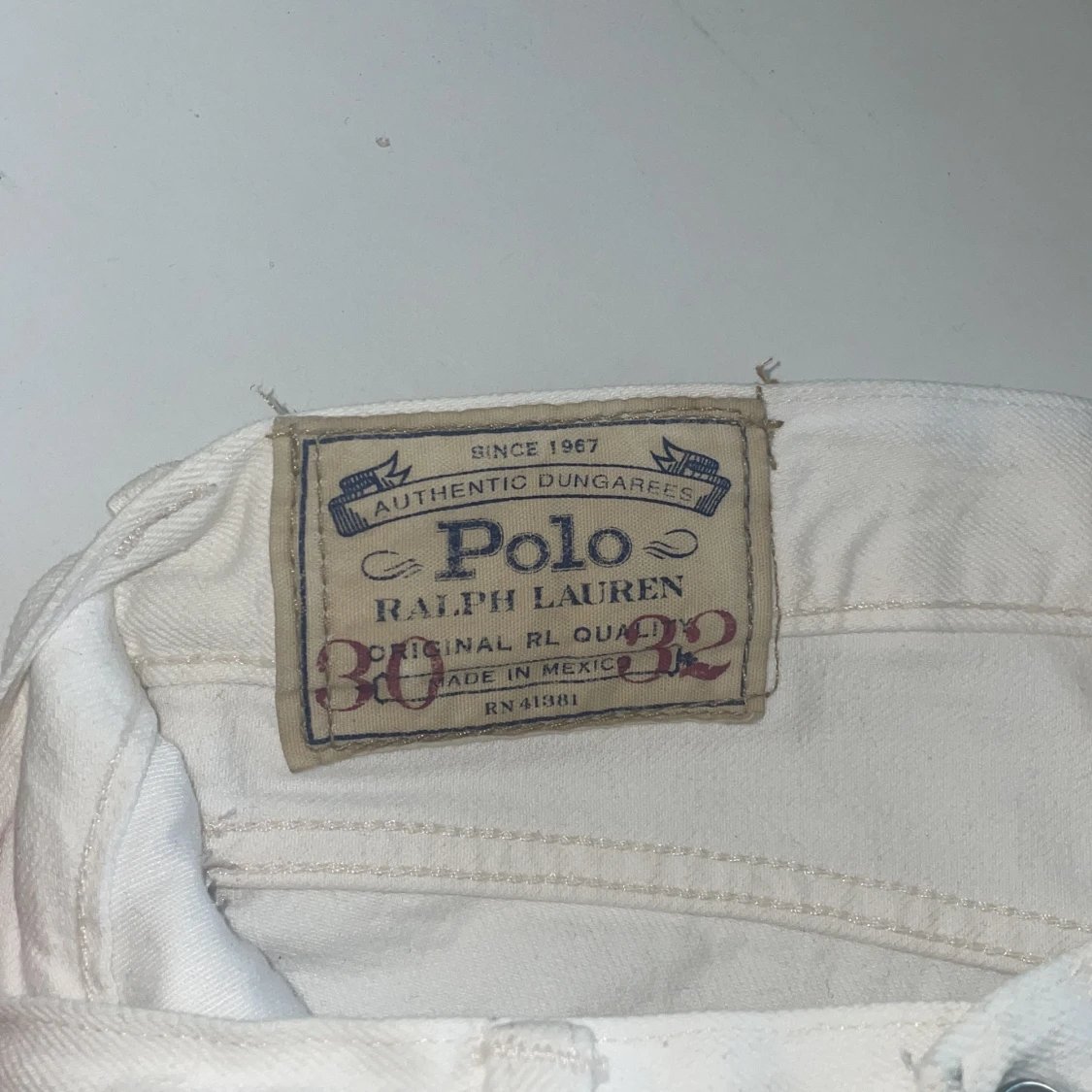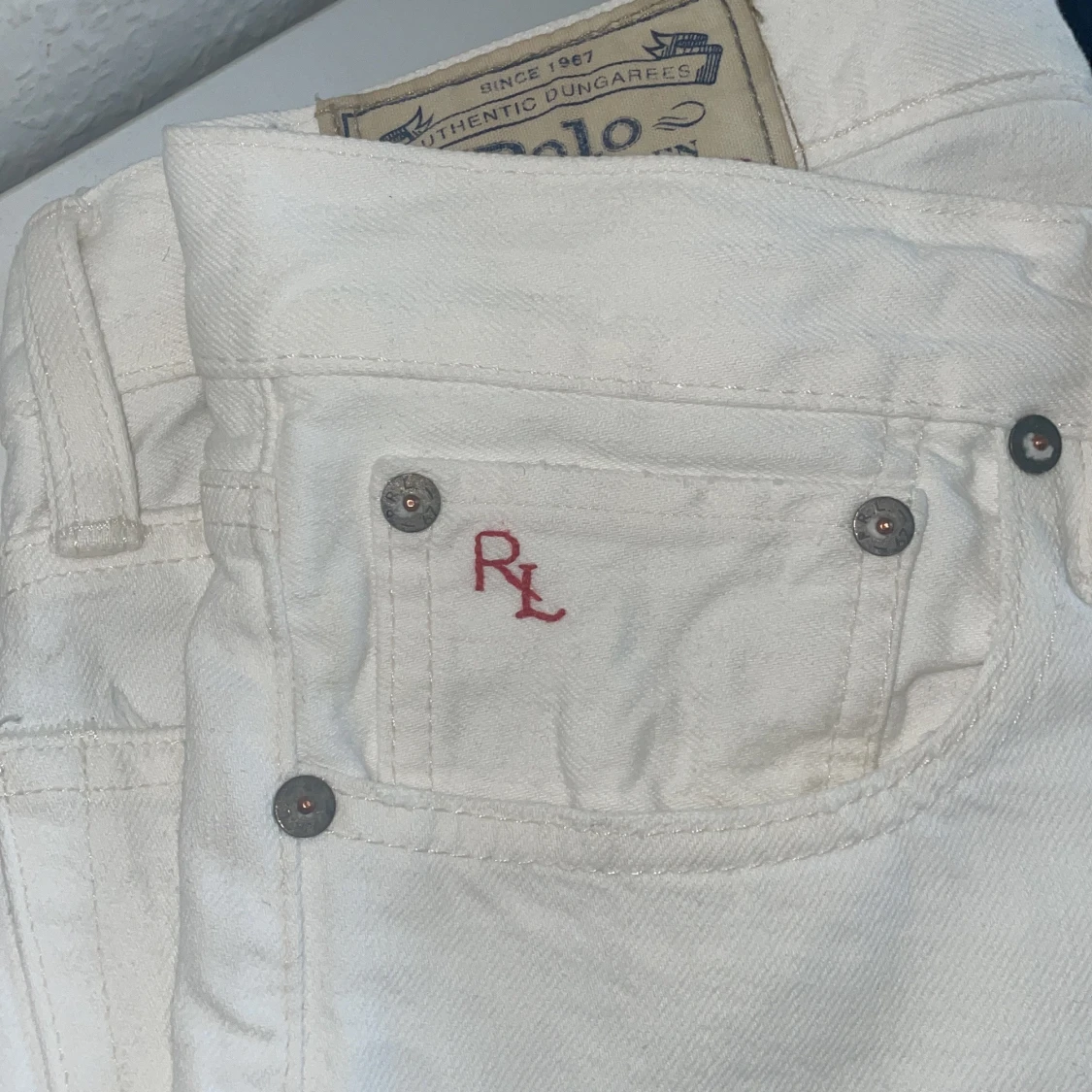 Snygga vita jeans från Polo Ralph Lauren med klassisk femficksdesign och röd RL-broderi på myntfickan. De har en rak passform och är tillverkade i ett slitstarkt material. Perfekt för hösten!