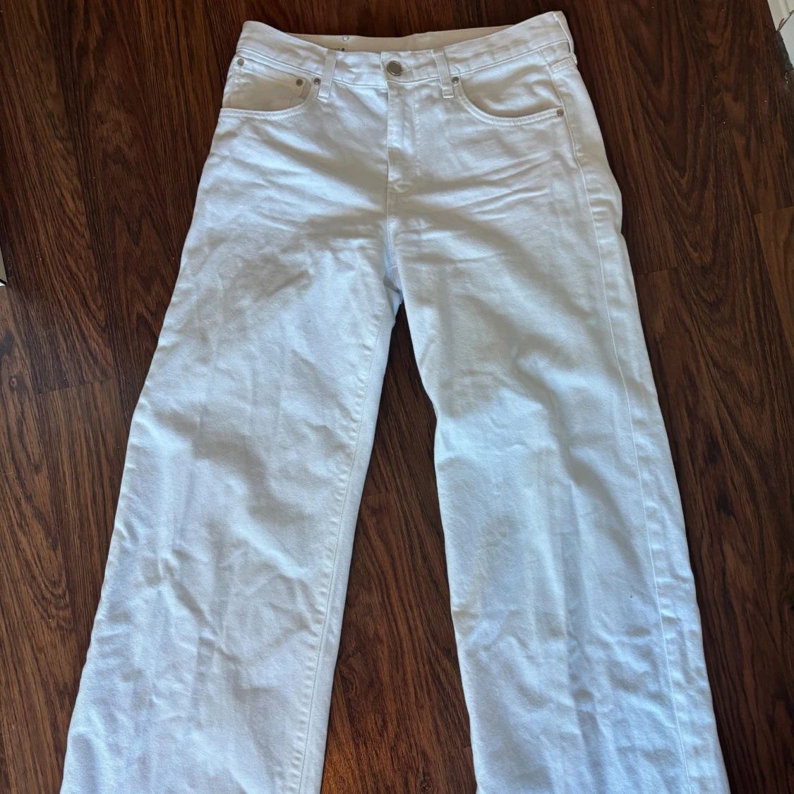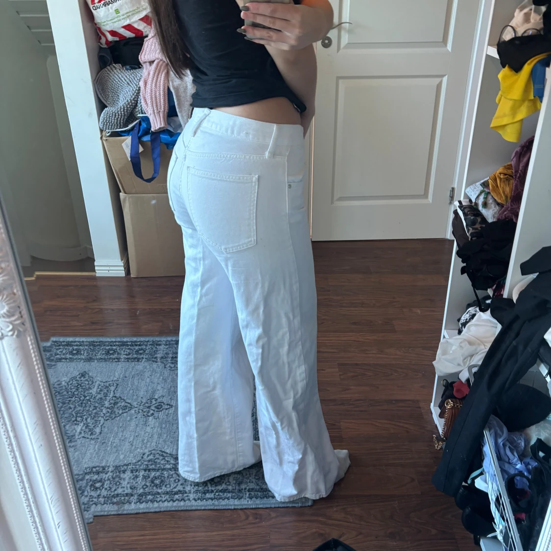 Säljer ett par vita jeans från Zara. Klassisk femficksmodell med raka sömmar och snygg passform. Jeansen är endast använda en gång och är i princip nyskick.💕