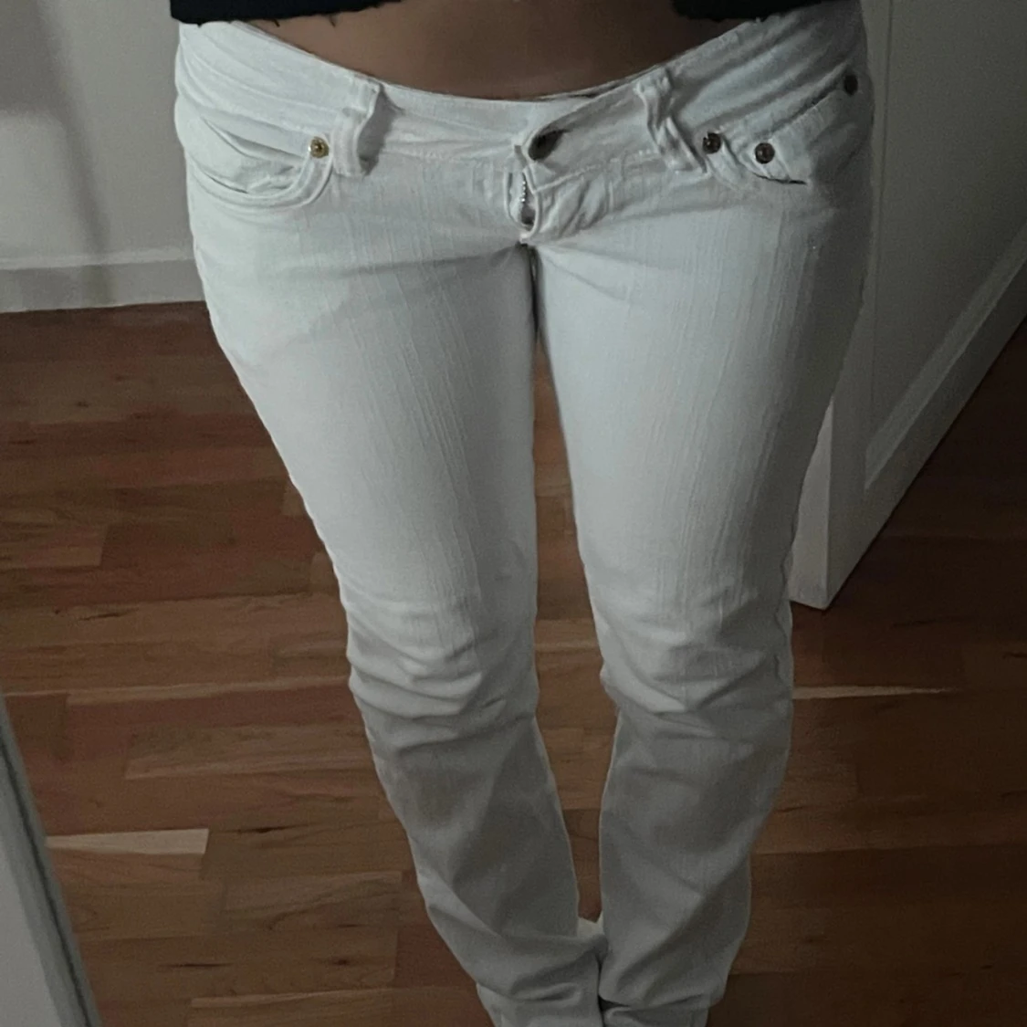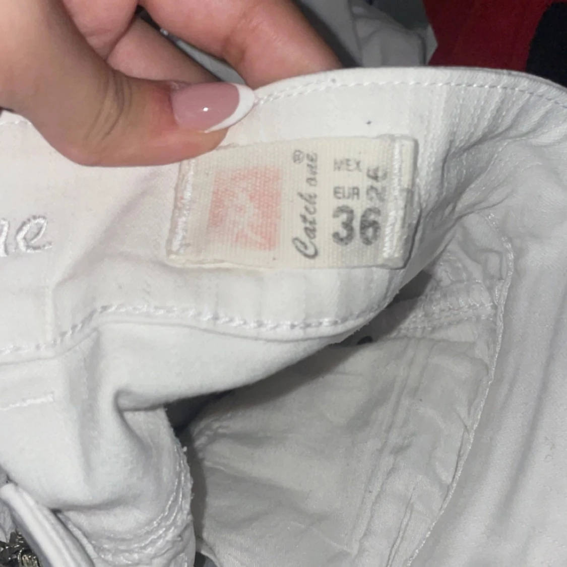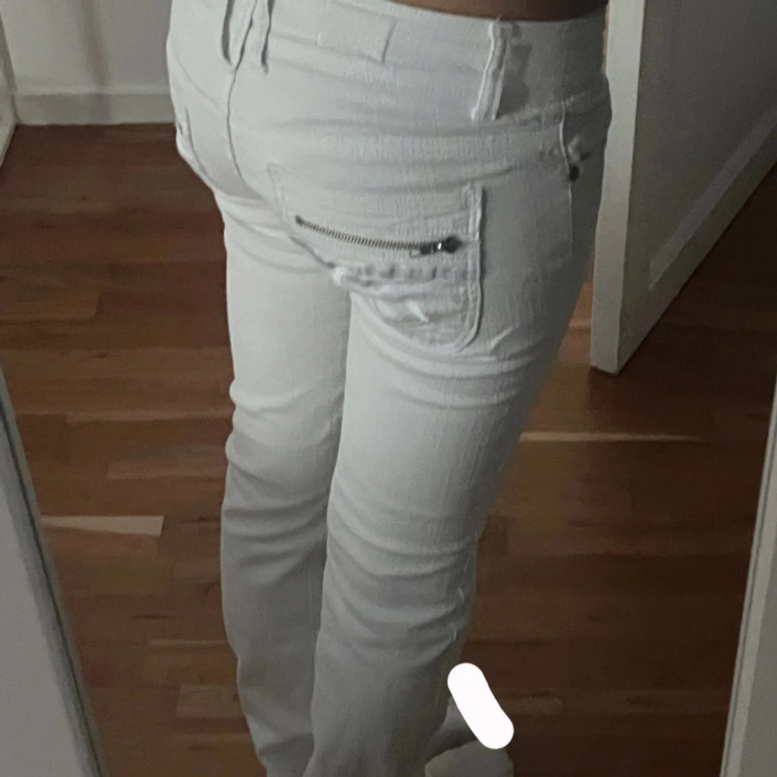 Säljer ett par vita jeansbyxor från Catch One i storlek 36 (passar mig som har 34). Byxorna har raka ben, snygga detaljer med dragkedja på bakfickan och små silvriga nitar framtill. Klassisk femficksmodell och normal passform. Knappen är lös men det är en sån man kan ta av och på.